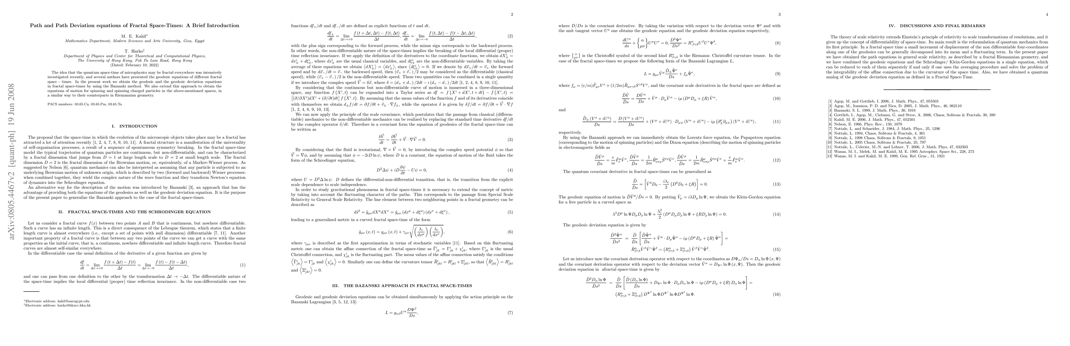The idea that the quantum space-time of microphysics may be fractal everywhere was intensively investigated recently, and several authors have presented the geodesic equations of different fractal space - times. In the present work we obtain the geodesic and the geodesic deviation equations in fractal space-times by using the Bazanski method. We also extend this approach to obtain the equations of motion for spinning and spinning charged particles in the above-mentioned spaces, in a similar way to their counterparts in Riemannian geometry.