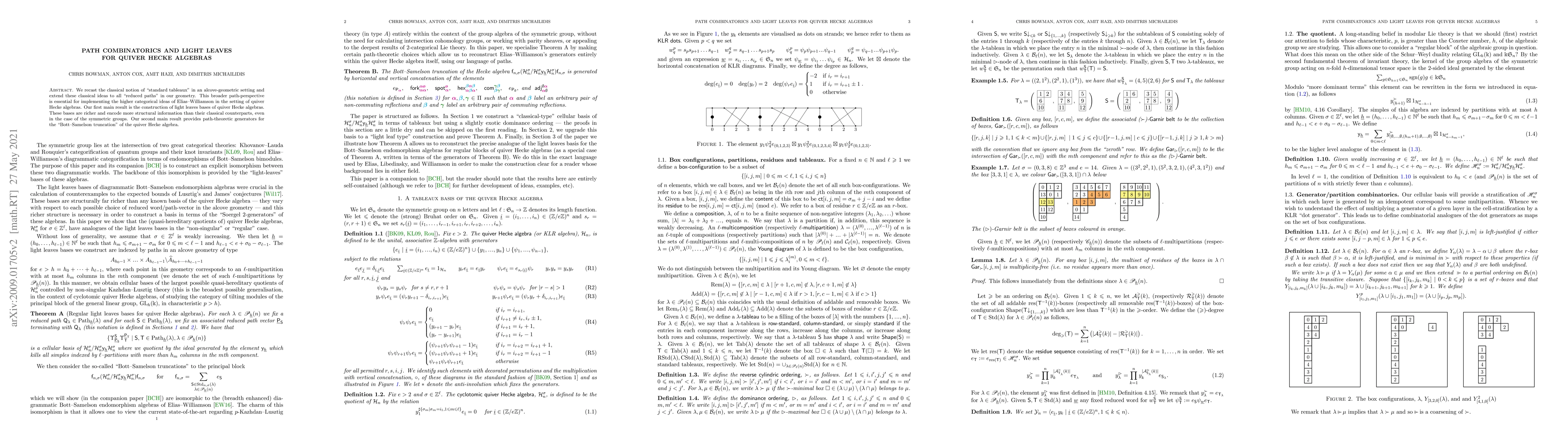This paper recasts standard tableaux in an alcove-geometric framework and extends it to all reduced paths, crucial for implementing Elias-Williamson's higher categorical ideas in quiver Hecke algebras. The authors construct light leaves bases that encode more structural information than classical counterparts and provide path-theoretic generators for the Bott-Samelson truncation.