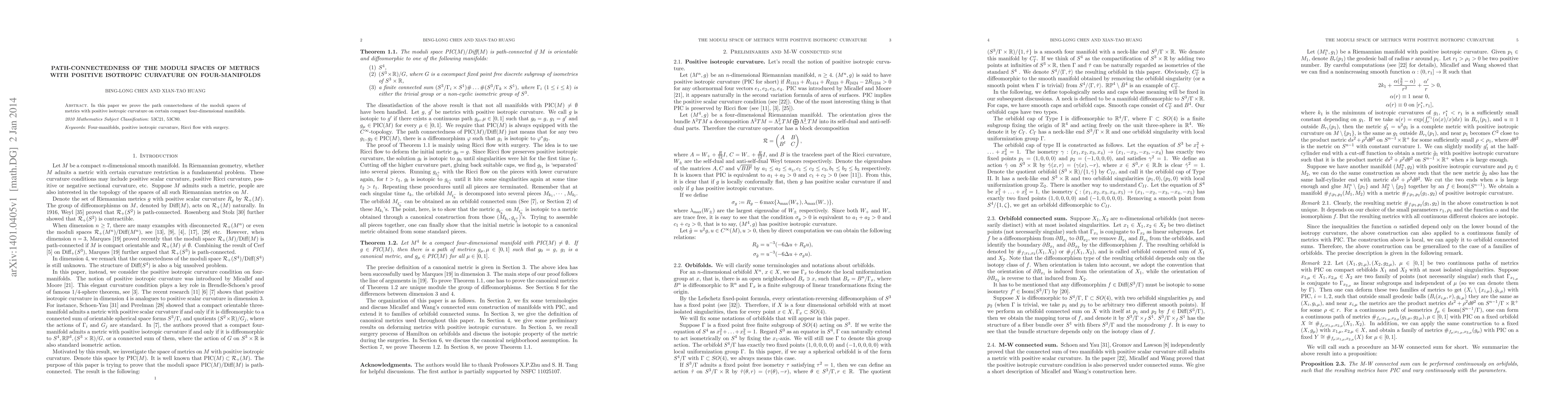 Summary: This paper establishes the path-connectedness of moduli spaces for metrics with positive isotropic curvature on specific compact four-manifolds. It provides a significant result regarding the structural properties of such geometric configurations.