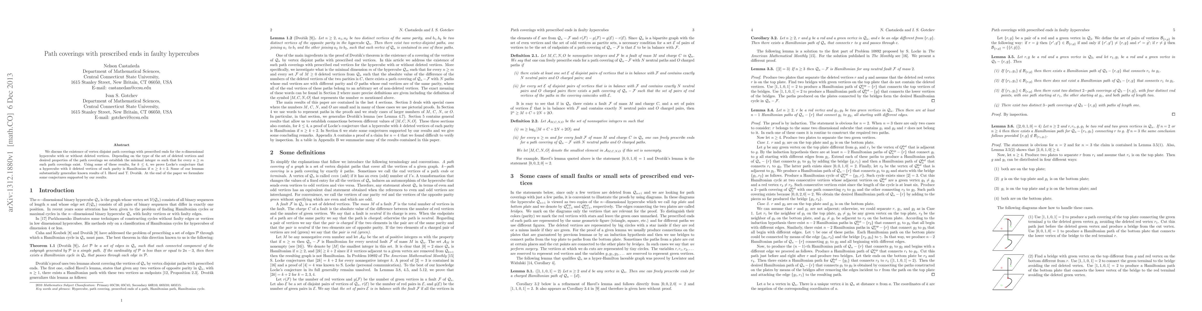 We discuss the existence of vertex disjoint path coverings with prescribed ends for the $n$-dimensional hypercube with or without deleted vertices. Depending on the type of the set of deleted vertices and desired properties of the path coverings we establish the minimal integer $m$ such that for every $n \ge m$ such path coverings exist. Using some of these results, for $k \le 4$, we prove Locke's conjecture that a hypercube with $k$ deleted vertices of each parity is Hamiltonian if $n \ge k +2.$ Some of our lemmas substantially generalize known results of I. Havel and T. Dvo\v{r}\'{a}k. At the end of the paper we formulate some conjectures supported by our results.