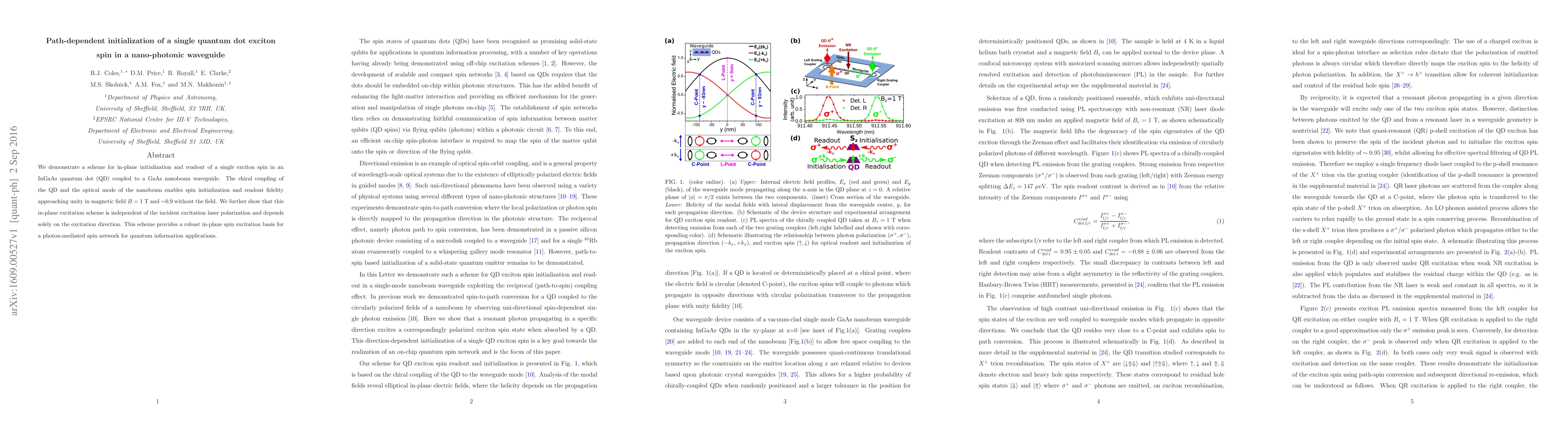 This paper presents a method for initializing and reading the spin of a single exciton in an InGaAs quantum dot coupled to a GaAs nanobeam waveguide, achieving high fidelity spin operations. The in-plane excitation scheme is independent of laser polarization and relies on excitation direction, offering a robust basis for quantum information networks.