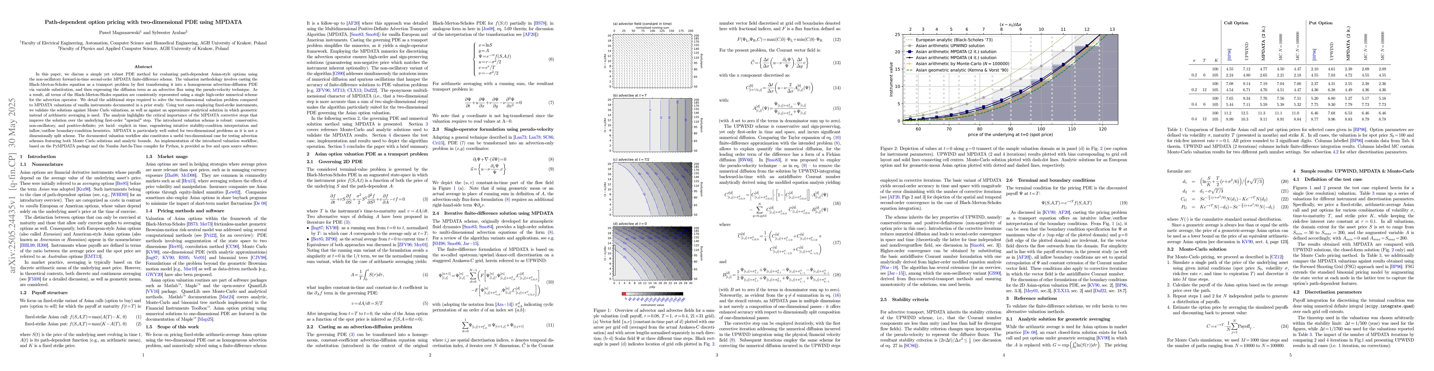 In this paper, we discuss a simple yet robust PDE method for evaluating path-dependent Asian-style options using the non-oscillatory forward-in-time second-order MPDATA finite-difference scheme. The valuation methodology involves casting the Black-Merton-Scholes equation as a transport problem by first transforming it into a homogeneous advection-diffusion PDE via variable substitution, and then expressing the diffusion term as an advective flux using the pseudo-velocity technique. As a result, all terms of the Black-Merton-Sholes equation are consistently represented using a single high-order numerical scheme for the advection operator. We detail the additional steps required to solve the two-dimensional valuation problem compared to MPDATA valuations of vanilla instruments documented in a prior study. Using test cases employing fixed-strike instruments, we validate the solutions against Monte Carlo valuations, as well as against an approximate analytical solution in which geometric instead of arithmetic averaging is used. The analysis highlights the critical importance of the MPDATA corrective steps that improve the solution over the underlying first-order "upwind" step. The introduced valuation scheme is robust: conservative, non-oscillatory, and positive-definite; yet lucid: explicit in time, engendering intuitive stability-condition interpretation and inflow/outflow boundary-condition heuristics. MPDATA is particularly well suited for two-dimensional problems as it is not a dimensionally split scheme. The documented valuation workflow also constitutes a useful two-dimensional case for testing advection schemes featuring both Monte Carlo solutions and analytic bounds. An implementation of the introduced valuation workflow, based on the PyMPDATA package and the Numba Just-In-Time compiler for Python, is provided as free and open source software.