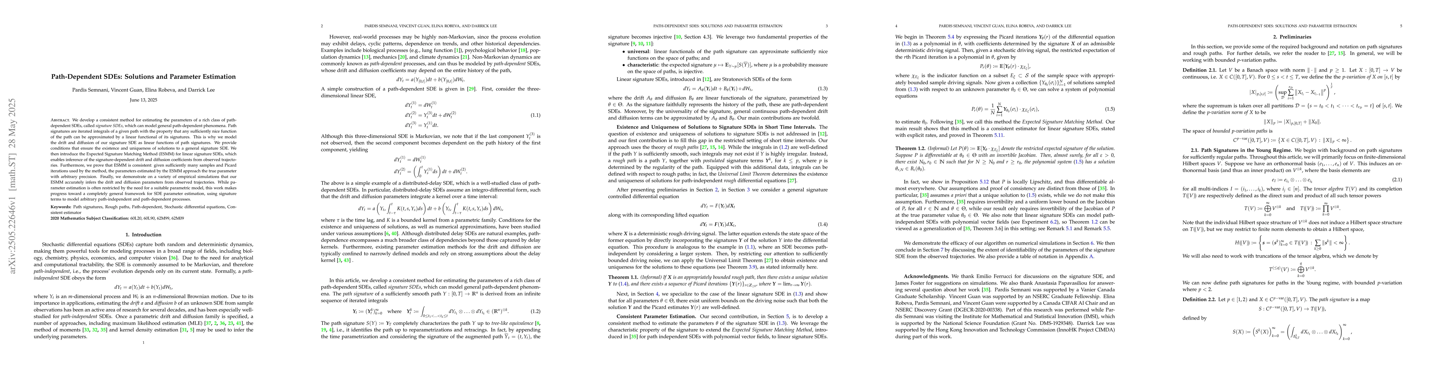 This work advances a general framework for SDE parameter estimation, using signature terms to model both path-independent and path-dependent processes, overcoming limitations of traditional parametric models.
