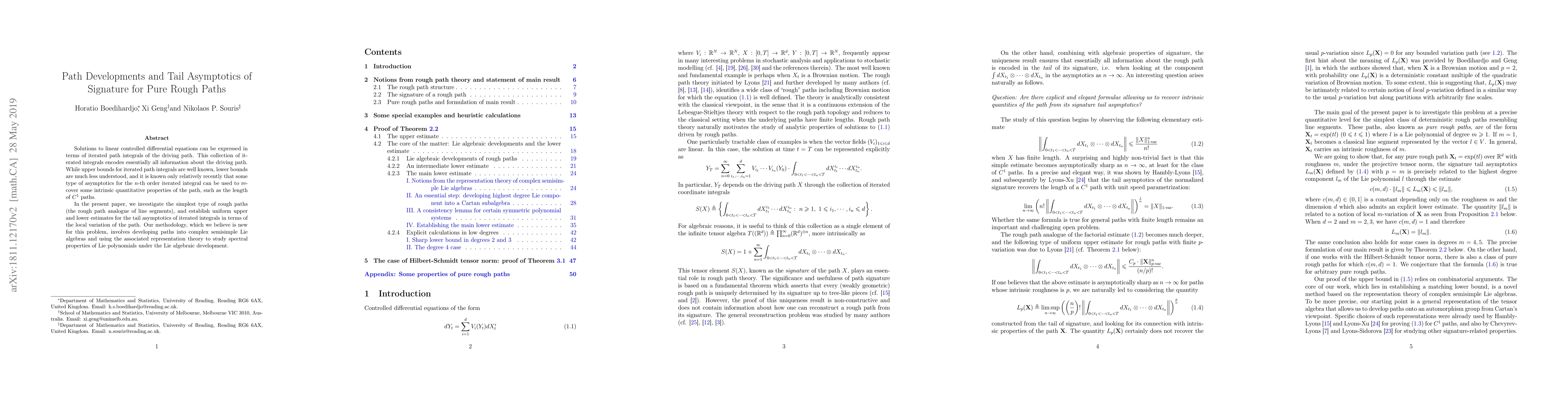 This paper presents new uniform upper and lower estimates for the tail asymptotics of iterated integrals in rough path theory. It uses a novel method involving the development of paths into complex semisimple Lie algebras and representation theory to analyze spectral properties of Lie polynomials.