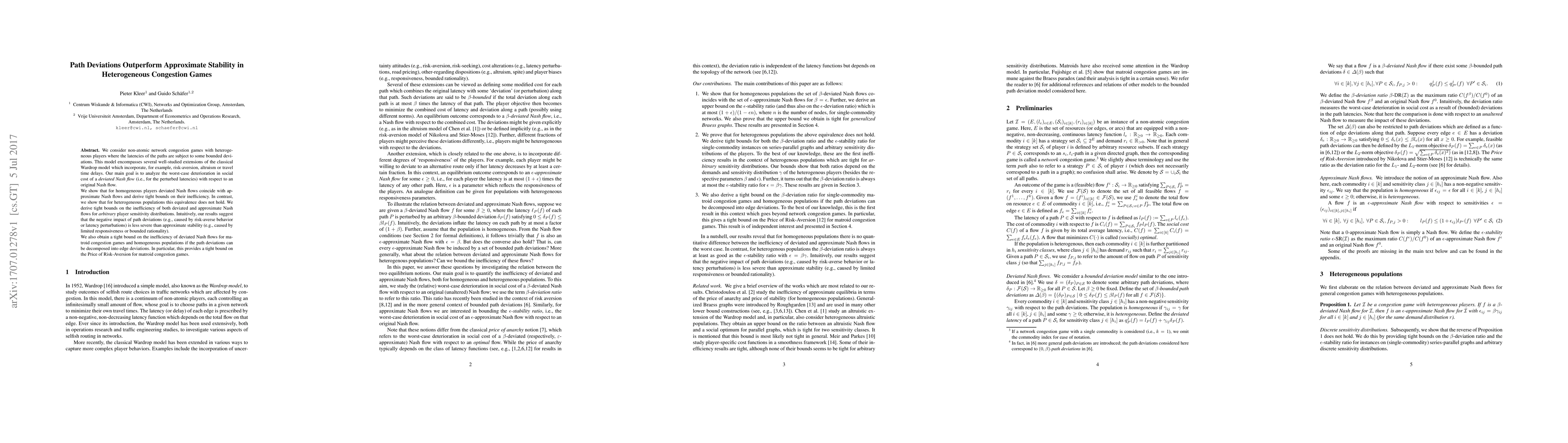 This paper investigates the impact of path deviations on social cost in heterogeneous congestion games, showing that such deviations can lead to better outcomes than approximate stability. It derives tight bounds on the inefficiency of perturbed Nash flows compared to approximate Nash flows, highlighting the lesser negative impact of path deviations compared to approximate stability in heterogeneous player scenarios.