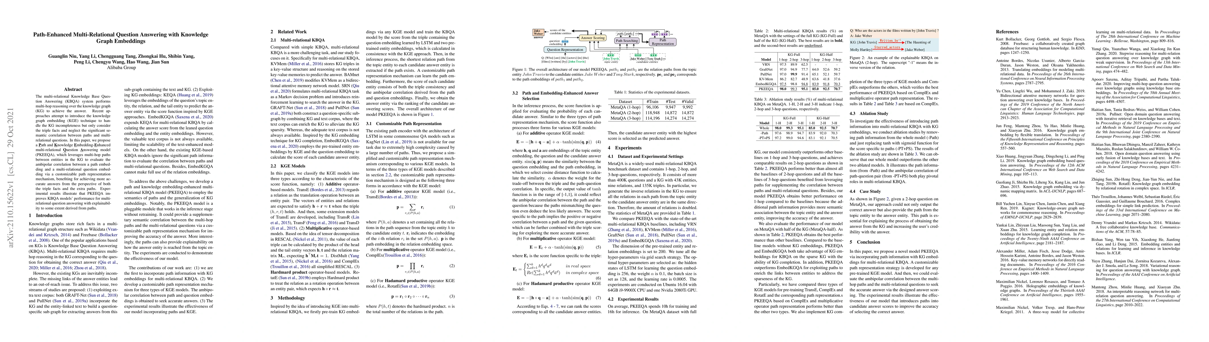 This paper introduces PKEEQA, a model that enhances multi-relational question answering by leveraging multi-hop paths in knowledge graphs and their embeddings to better correlate with multi-relational questions, improving accuracy and explainability. Experimental results show improved performance over existing KBQA models.