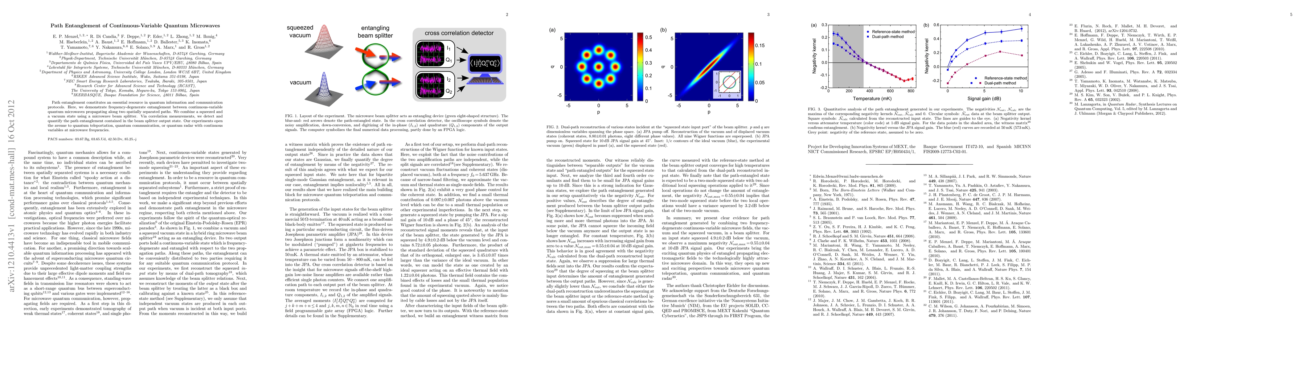 This paper demonstrates frequency-degenerate path entanglement between continuous-variable quantum microwaves using a beam splitter, paving the way for quantum teleportation, communication, and radar applications at microwave frequencies. The entanglement is quantified through correlation measurements, highlighting its potential in quantum information protocols.