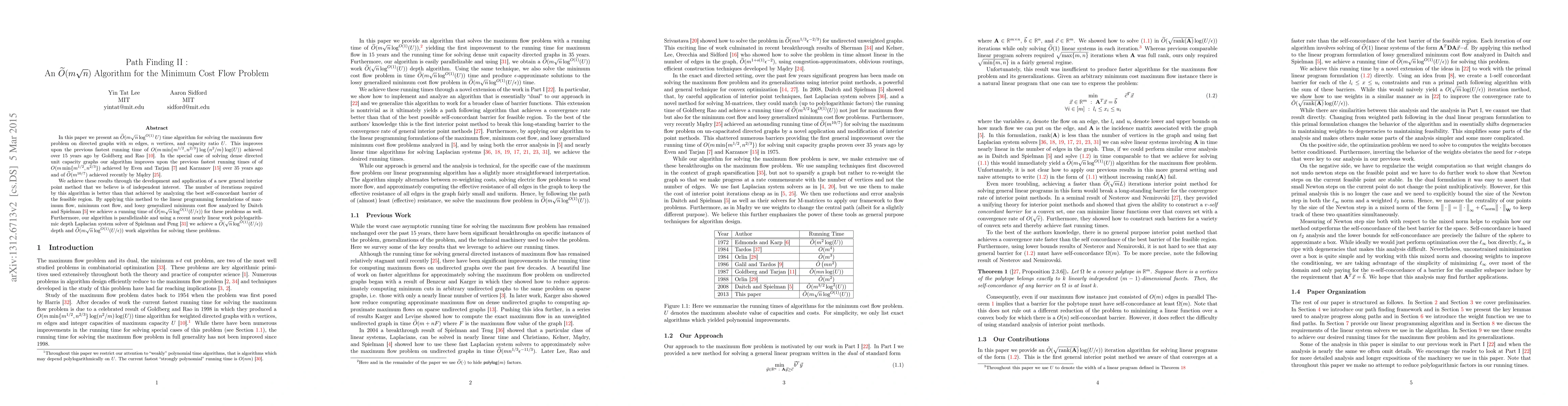 This research paper presents an algorithm with a time complexity of O(m sqrt(n) log^{O(1)}U) for solving the minimum cost flow problem, improving previous fastest running times by up to 35 years.