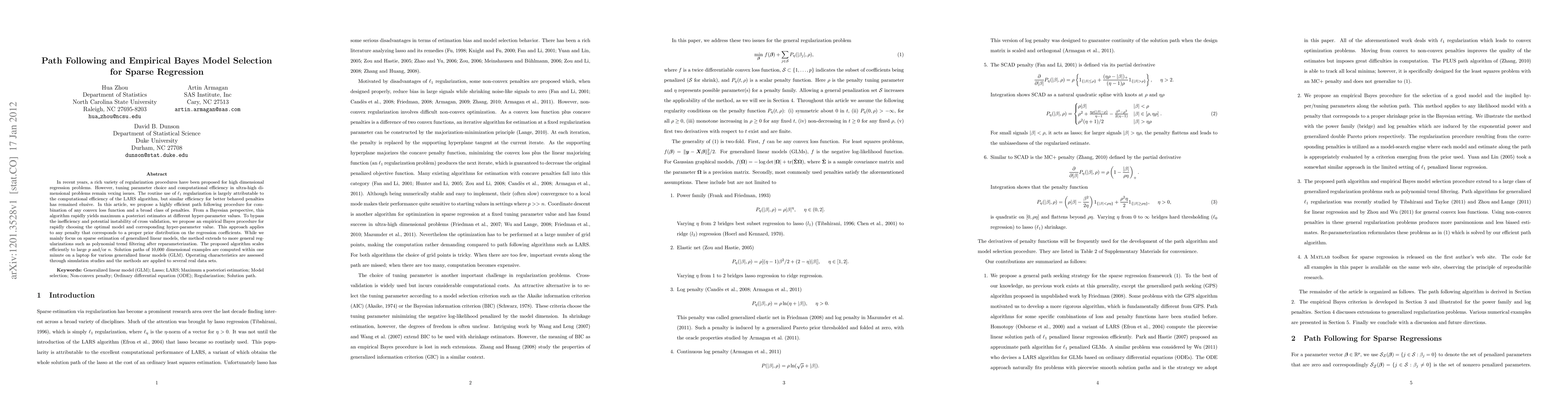 In recent years, a rich variety of regularization procedures have been proposed for high dimensional regression problems. However, tuning parameter choice and computational efficiency in ultra-high dimensional problems remain vexing issues. The routine use of $\ell_1$ regularization is largely attributable to the computational efficiency of the LARS algorithm, but similar efficiency for better behaved penalties has remained elusive. In this article, we propose a highly efficient path following procedure for combination of any convex loss function and a broad class of penalties. From a Bayesian perspective, this algorithm rapidly yields maximum a posteriori estimates at different hyper-parameter values. To bypass the inefficiency and potential instability of cross validation, we propose an empirical Bayes procedure for rapidly choosing the optimal model and corresponding hyper-parameter value. This approach applies to any penalty that corresponds to a proper prior distribution on the regression coefficients. While we mainly focus on sparse estimation of generalized linear models, the method extends to more general regularizations such as polynomial trend filtering after reparameterization. The proposed algorithm scales efficiently to large $p$ and/or $n$. Solution paths of 10,000 dimensional examples are computed within one minute on a laptop for various generalized linear models (GLM). Operating characteristics are assessed through simulation studies and the methods are applied to several real data sets.