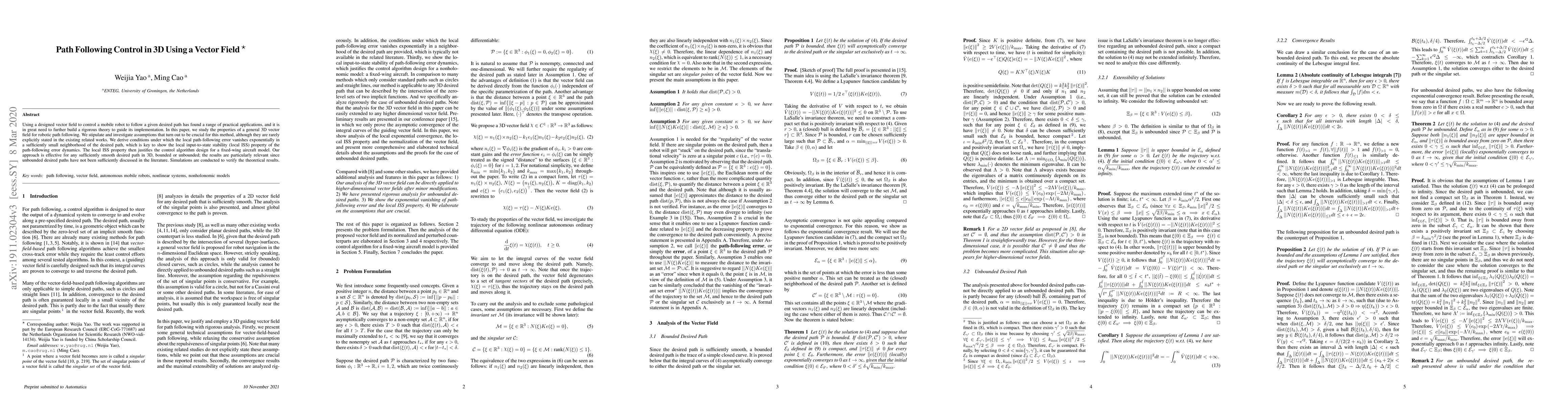 Researchers develop a method for 3D path following using a vector field, demonstrating local input-to-state stability and effectiveness for bounded and unbounded desired paths.