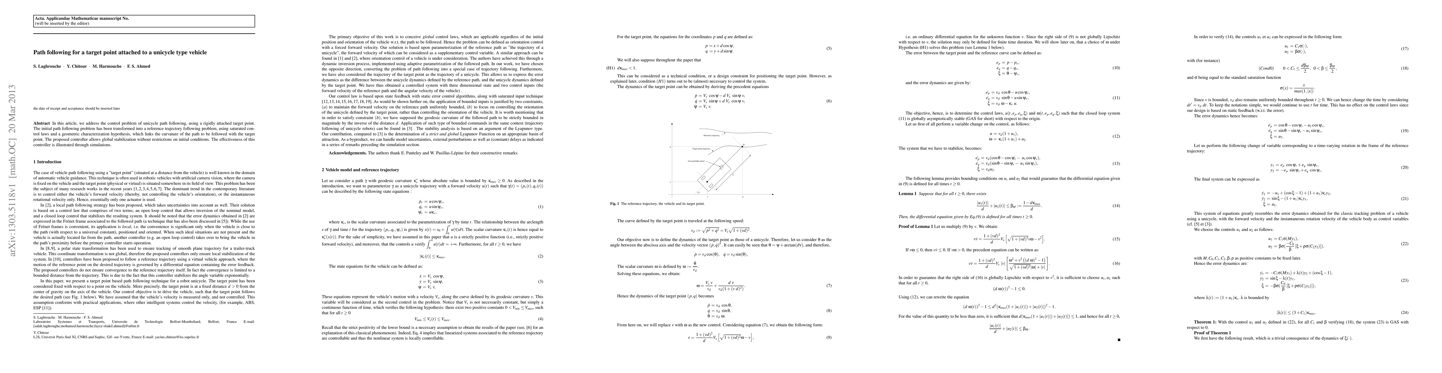 This paper proposes a controller for a unicycle-type vehicle to follow a path with a rigidly attached target point, transforming the problem into a reference trajectory following issue. The controller ensures global stabilization regardless of initial conditions, validated through simulations.