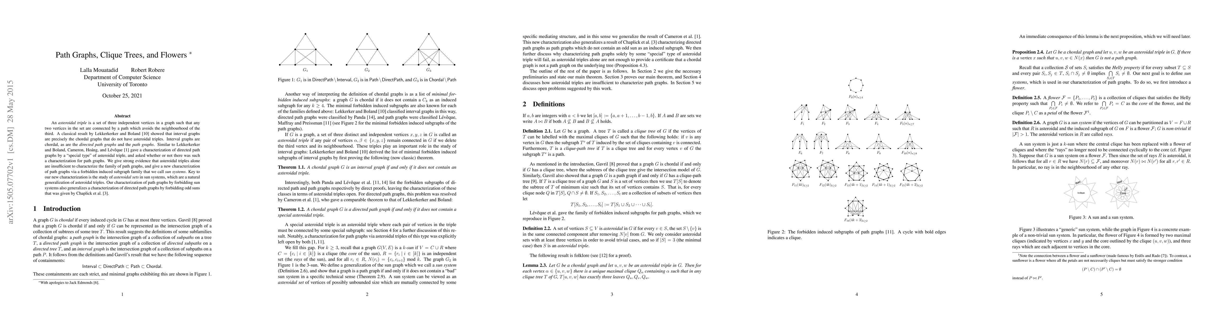 This paper presents a new characterization of path graphs using forbidden induced subgraphs called "sun systems," showing that asteroidal triples alone are insufficient for this purpose. The study of asteroidal sets within sun systems generalizes the concept of asteroidal triples and extends previous characterizations of directed path graphs.