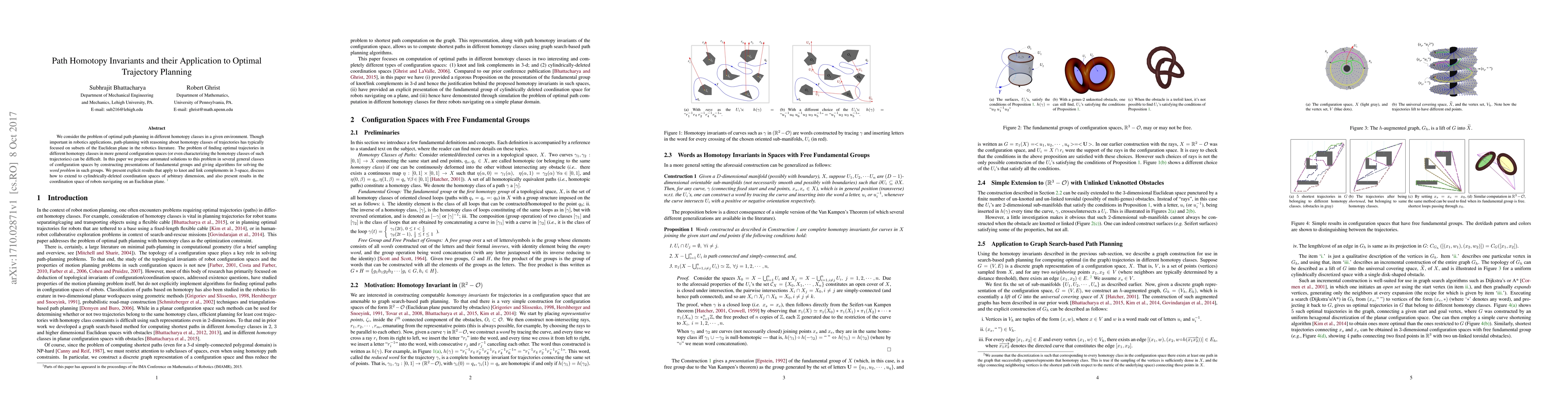 This paper proposes automated methods for optimal path planning in various homotopy classes by constructing fundamental group presentations and solving the word problem in these groups. It applies these techniques to knot and link complements in 3D space, cylindrically-deleted coordination spaces, and robot navigation in the plane.