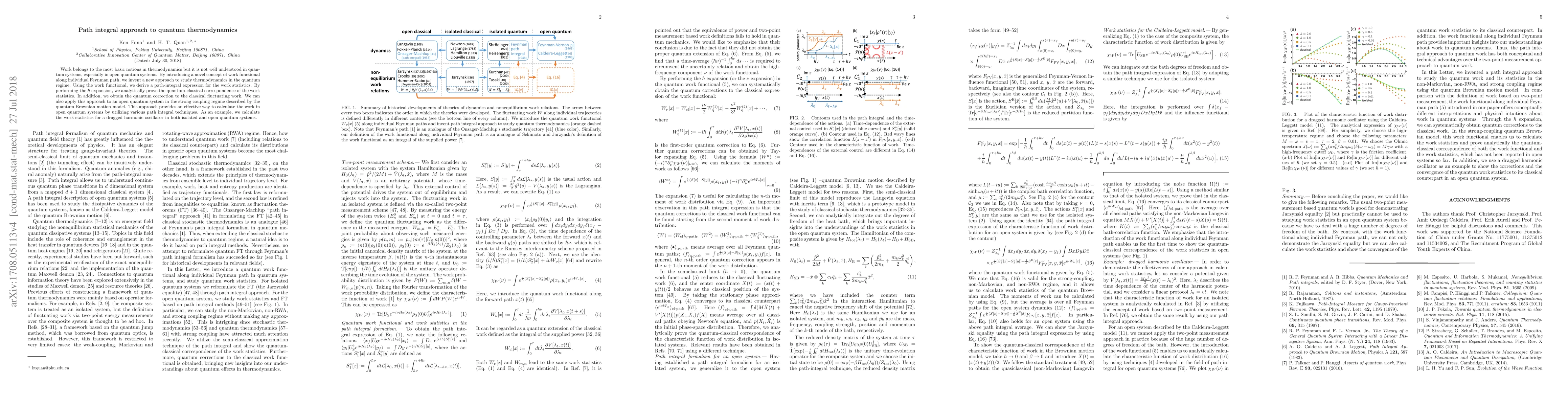 This paper introduces a novel path integral approach to study quantum thermodynamics, particularly focusing on the work statistics in quantum systems. It derives a path-integral expression for work and proves the quantum-classical correspondence through $\hbar$ expansion, providing a method to calculate work in open quantum systems like the quantum Brownian motion model.