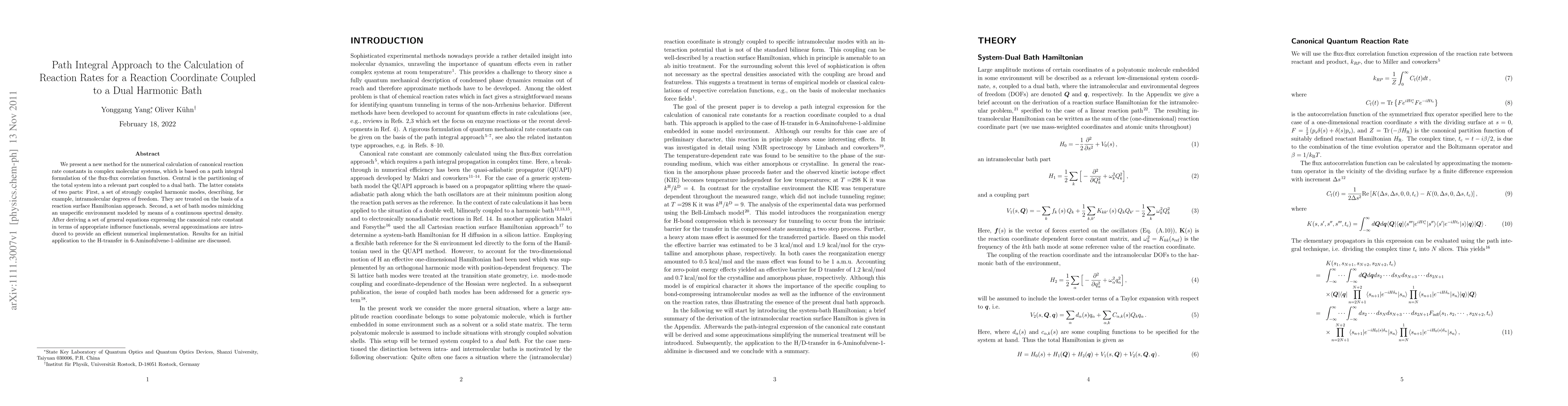 Researchers developed a new method to calculate reaction rates in complex molecular systems using a path integral approach, incorporating both harmonic modes representing intramolecular degrees of freedom and a continuous spectral density for an unspecific environment.