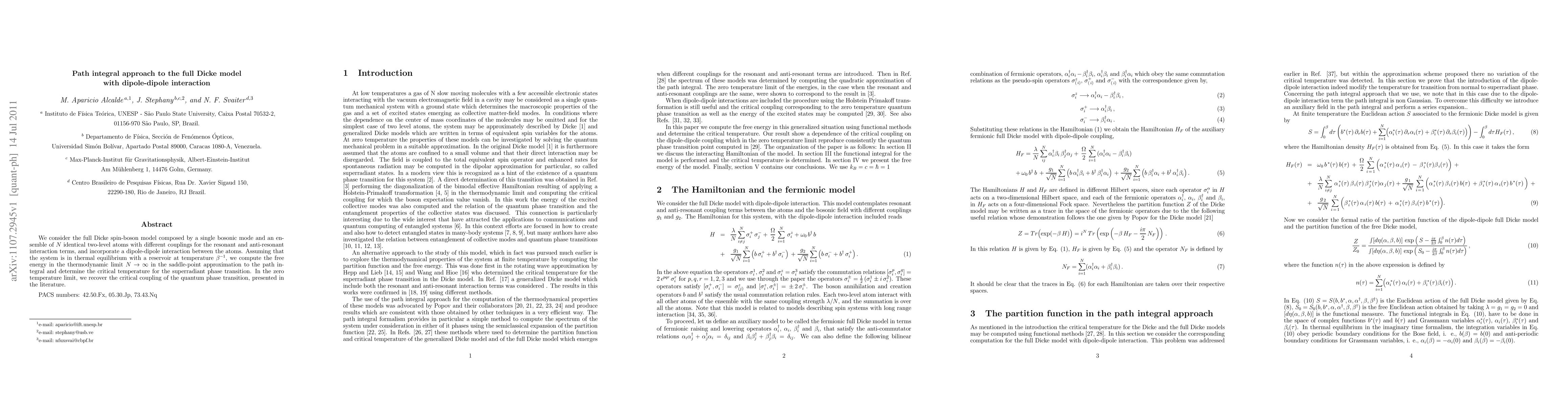 We consider the full Dicke spin-boson model composed by a single bosonic mode and an ensemble of $N$ identical two-level atoms with different couplings for the resonant and anti-resonant interaction terms, and incorporate a dipole-dipole interaction between the atoms. Assuming that the system is in thermal equilibrium with a reservoir at temperature $\beta^{-1}$, we compute the free energy in the thermodynamic limit $N\rightarrow\infty$ in the saddle-point approximation to the path integral and determine the critical temperature for the superradiant phase transition. In the zero temperature limit, we recover the critical coupling of the quantum phase transition, presented in the literature.