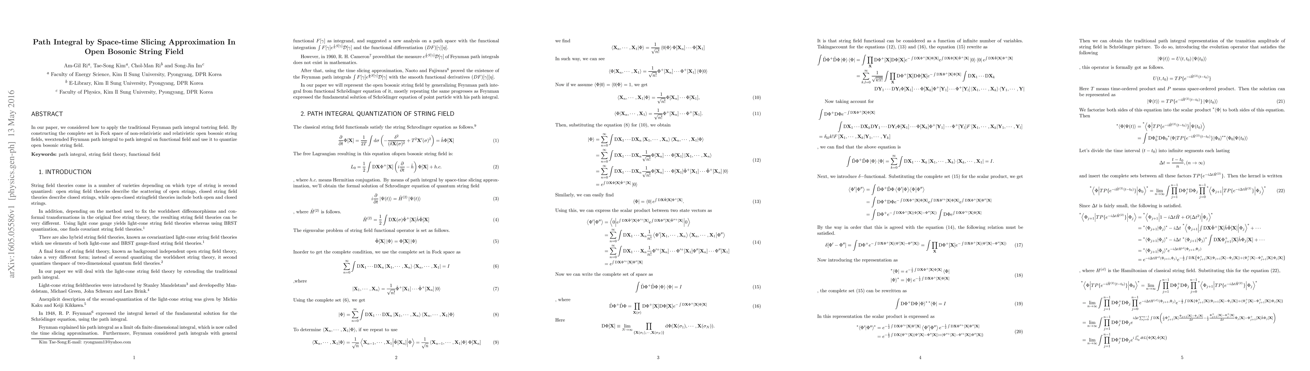 This paper extends the traditional Feynman path integral to open bosonic string fields by constructing a complete set in Fock space and applying it to functional field quantization, thereby providing a new approach to string field theory.