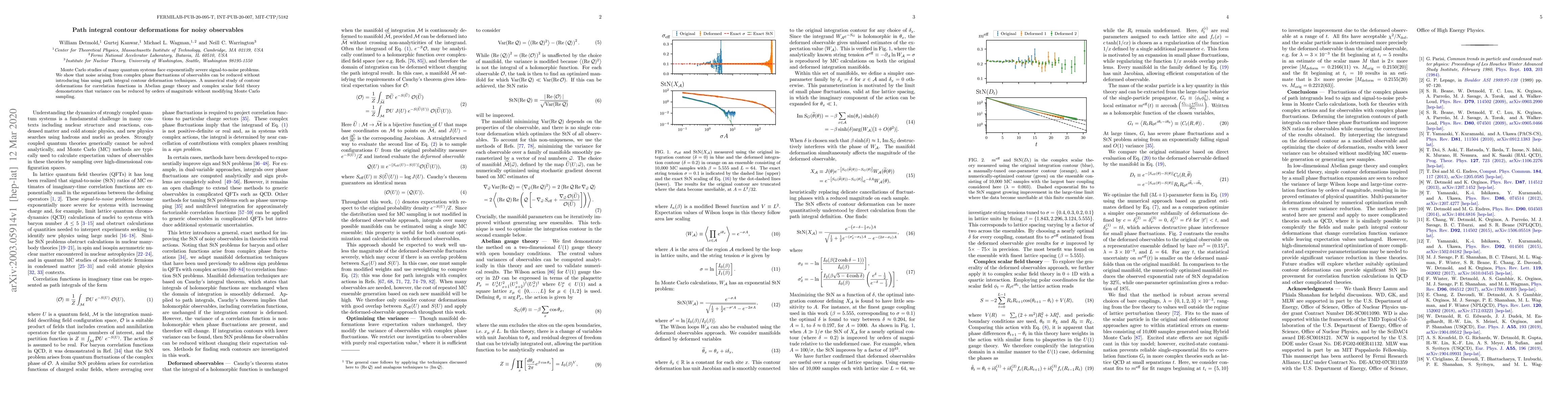 This paper proposes path integral contour deformation techniques to reduce noise in Monte Carlo simulations of quantum systems without introducing bias. Numerical studies in Abelian gauge theory and complex scalar field theory show significant variance reduction by orders of magnitude.