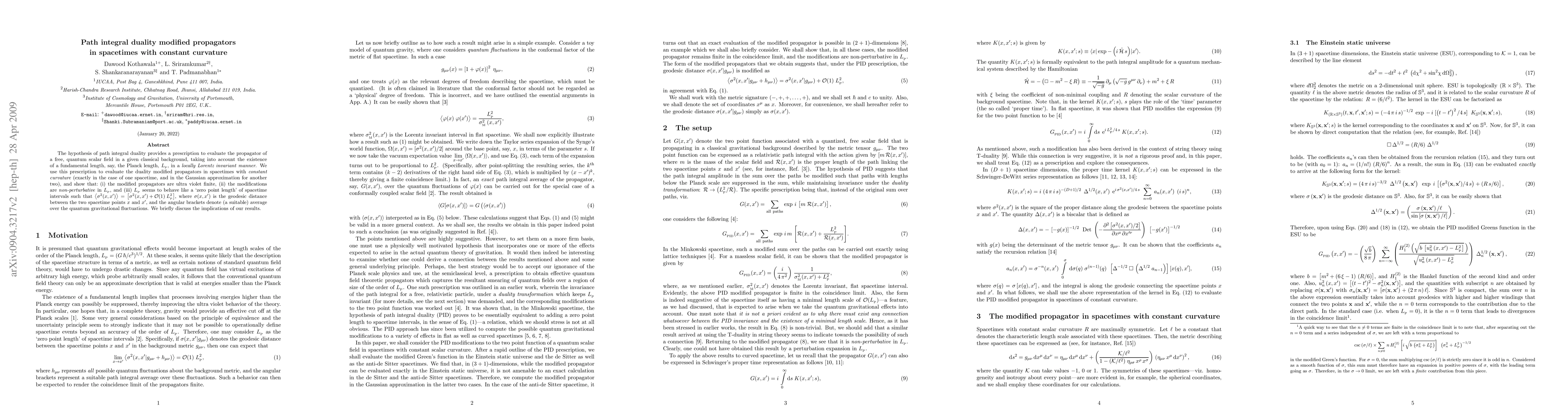 The hypothesis of path integral duality provides a prescription to evaluate the propagator of a free, quantum scalar field in a given classical background, taking into account the existence of a fundamental length, say, the Planck length, $\lp$, in a {\it locally Lorentz invariant manner}. We use this prescription to evaluate the duality modified propagators in spacetimes with {\it constant curvature} (exactly in the case of one spacetime, and in the Gaussian approximation for another two), and show that: (i) the modified propagators are ultra violet finite, (ii) the modifications are {\it non-perturbative} in $\lp$, and (iii) $\lp$ seems to behave like a `zero point length' of spacetime intervals such that $\l< \sigma^2(x,x')\r> = \l[\sigma^{2}(x,x')+ {\cal O}(1) \lp^2 \r]$, where $\sigma(x,x')$ is the geodesic distance between the two spacetime points $x$ and $x'$, and the angular brackets denote (a suitable) average over the quantum gravitational fluctuations. We briefly discuss the implications of our results.