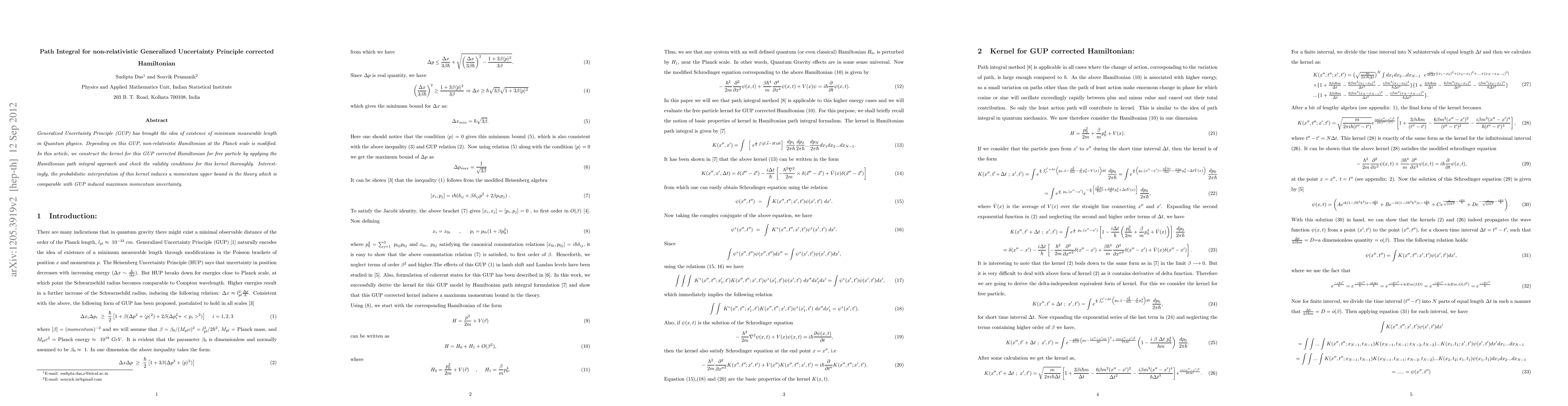 This paper constructs a kernel for a non-relativistic Hamiltonian modified by the Generalized Uncertainty Principle (GUP) using the Hamiltonian path integral approach. The study finds that the probabilistic interpretation of this kernel introduces a momentum upper bound consistent with GUP's maximum momentum uncertainty.