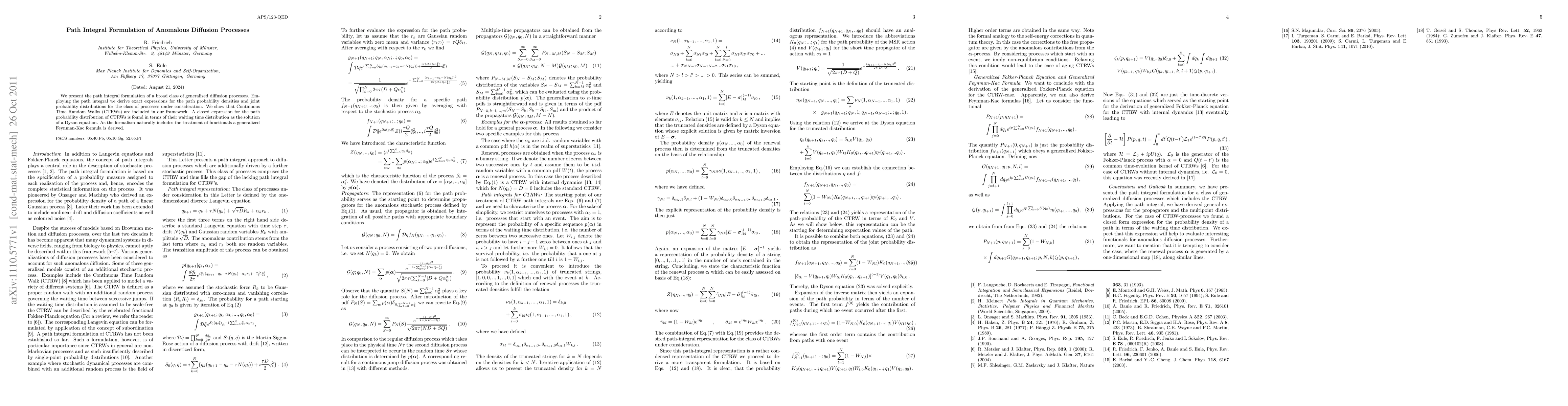 This paper develops a path integral formulation for generalized anomalous diffusion processes, deriving exact expressions for path probability densities and joint distributions. It includes Continuous Time Random Walks (CTRWs) within its framework, providing a closed expression for their path probability distribution and deriving a generalized Feynman-Kac formula.