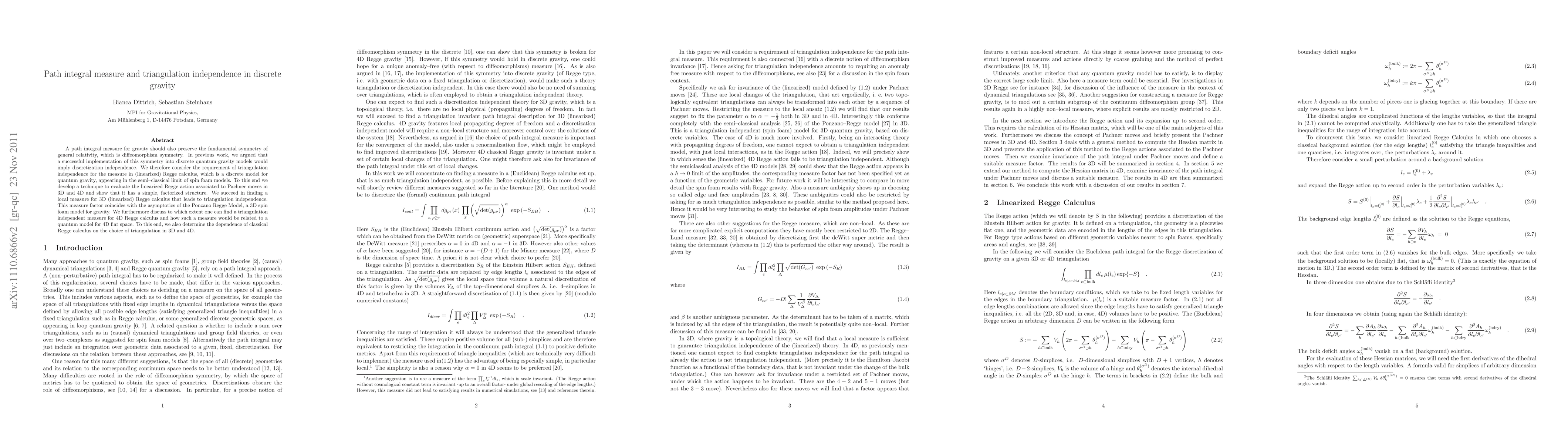 This paper develops a path integral measure for linearized Regge calculus that preserves diffeomorphism symmetry, demonstrating triangulation independence in 3D. It also explores the possibility of a similar measure in 4D Regge calculus, relating it to quantum models for 4D flat space.