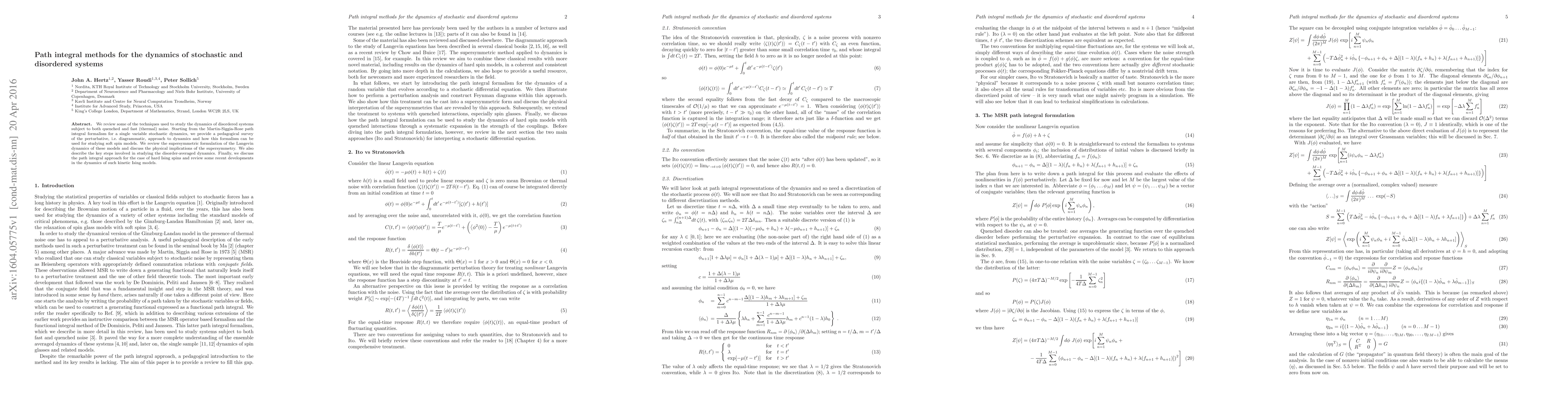We review some of the techniques used to study the dynamics of disordered systems subject to both quenched and fast (thermal) noise. Starting from the Martin-Siggia-Rose path integral formalism for a single variable stochastic dynamics, we provide a pedagogical survey of the perturbative, i.e. diagrammatic, approach to dynamics and how this formalism can be used for studying soft spin models. We review the supersymmetric formulation of the Langevin dynamics of these models and discuss the physical implications of the supersymmetry. We also describe the key steps involved in studying the disorder-averaged dynamics. Finally, we discuss the path integral approach for the case of hard Ising spins and review some recent developments in the dynamics of such kinetic Ising models.