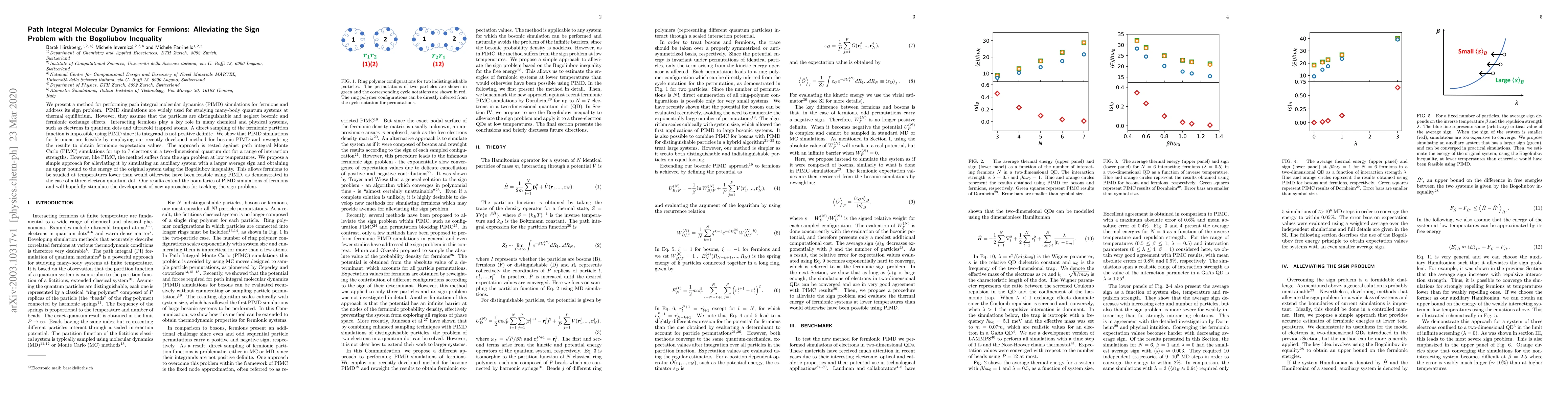 This paper introduces a method for conducting path integral molecular dynamics (PIMD) simulations for fermions, addressing the sign problem inherent in such simulations. The method reweights bosonic PIMD results to obtain fermionic expectation values, tested against path integral Monte Carlo (PIMC) simulations, and proposes a strategy to mitigate the sign problem using an auxiliary system and the Bogoliubov inequality, enabling studies at lower temperatures.