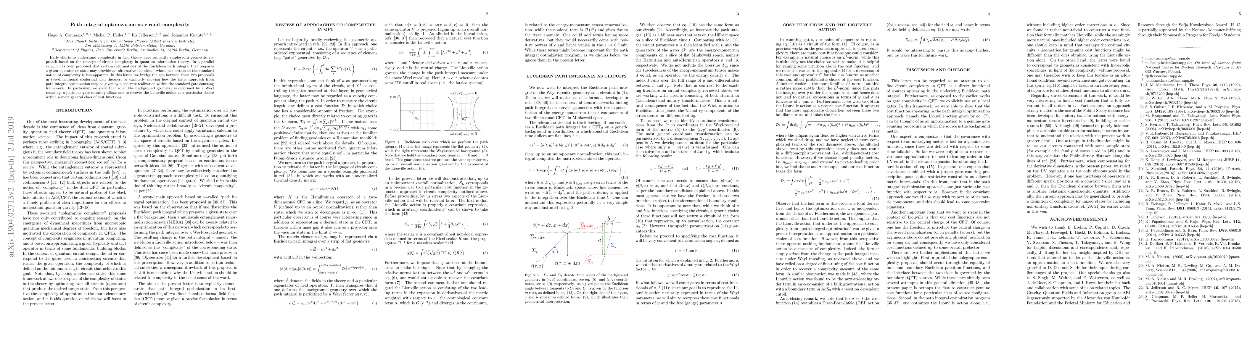 Early efforts to understand complexity in field theory have primarily employed a geometric approach based on the concept of circuit complexity in quantum information theory. In a parallel vein, it has been proposed that certain deformations of the Euclidean path integral that prepares a given operator or state may provide an alternative definition, whose connection to the standard notion of complexity is less apparent. In this letter, we bridge the gap between these two proposals in two-dimensional conformal field theories, by explicitly showing how the latter approach from path integral optimization may be given a concrete realization within the standard gate counting framework. In particular, we show that when the background geometry is deformed by a Weyl rescaling, a judicious gate counting allows one to recover the Liouville action as a particular choice within a more general class of cost functions.