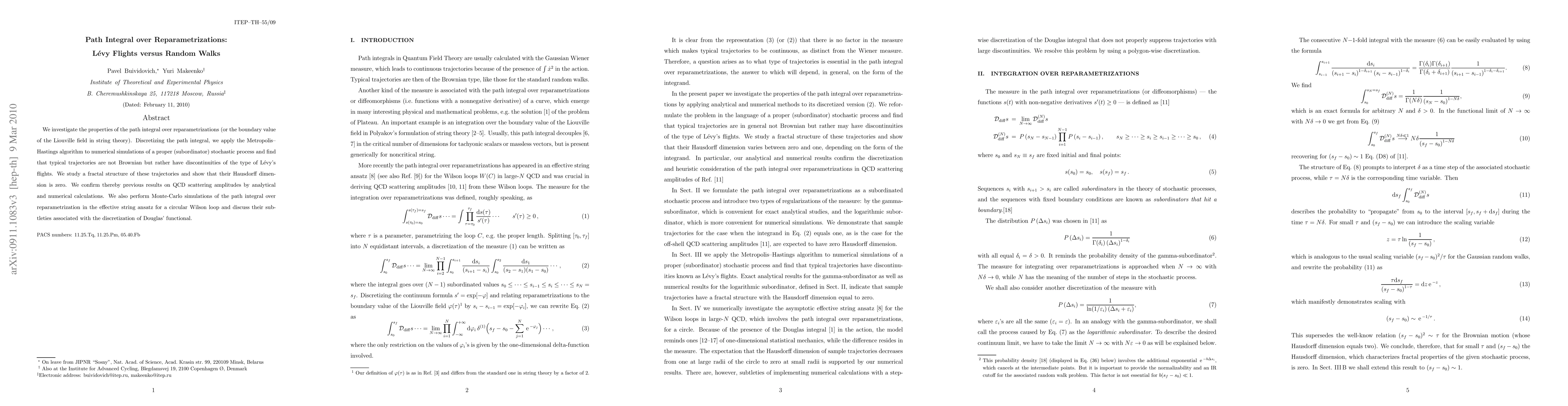 This research paper explores the path integral over reparametrizations, finding that typical trajectories resemble Levy flights rather than Brownian motion, supported by numerical simulations and Monte Carlo studies. It also investigates the fractal structure of these trajectories, confirming their Hausdorff dimension is zero, with implications for QCD scattering amplitudes and effective-string ansatz for circular Wilson loops.