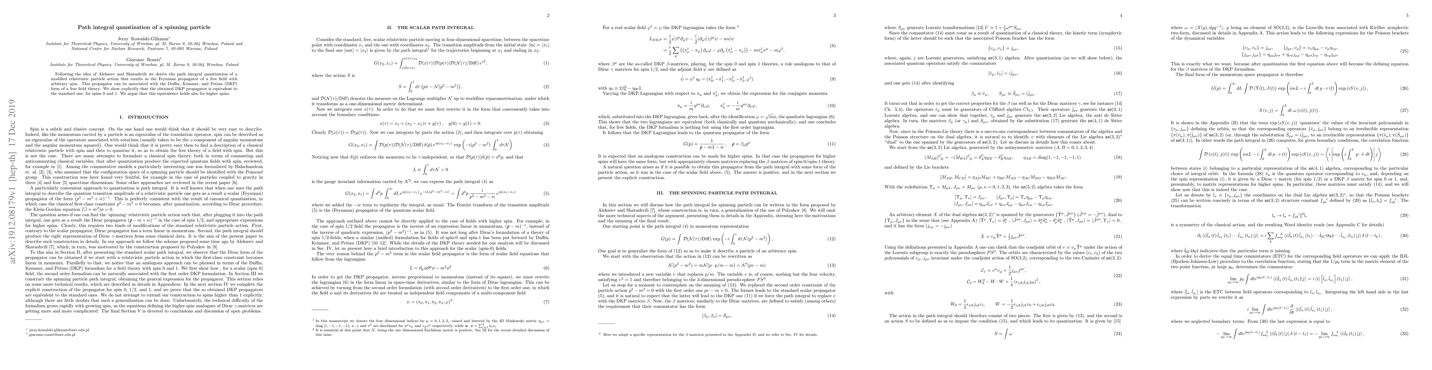 This paper derives the path integral quantization of a relativistic spinning particle using a modified action, resulting in the Feynman propagator associated with the DKP form. The authors demonstrate the equivalence of the derived DKP propagator to the standard one for spins 0 and 1, and argue this equivalence extends to higher spins.