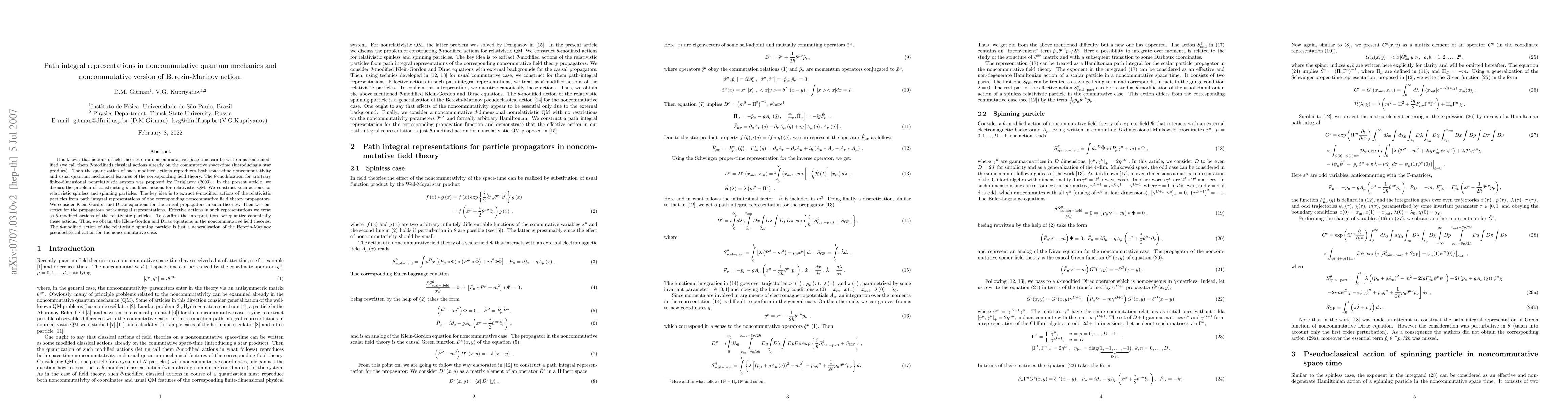 This paper constructs $\theta$-modified actions for relativistic quantum mechanics by deriving path integral representations for noncommutative field theory propagators. It quantizes these actions to confirm the Klein-Gordon and Dirac equations in noncommutative field theories, generalizing the Berezin-Marinov pseudoclassical action for spinning particles.