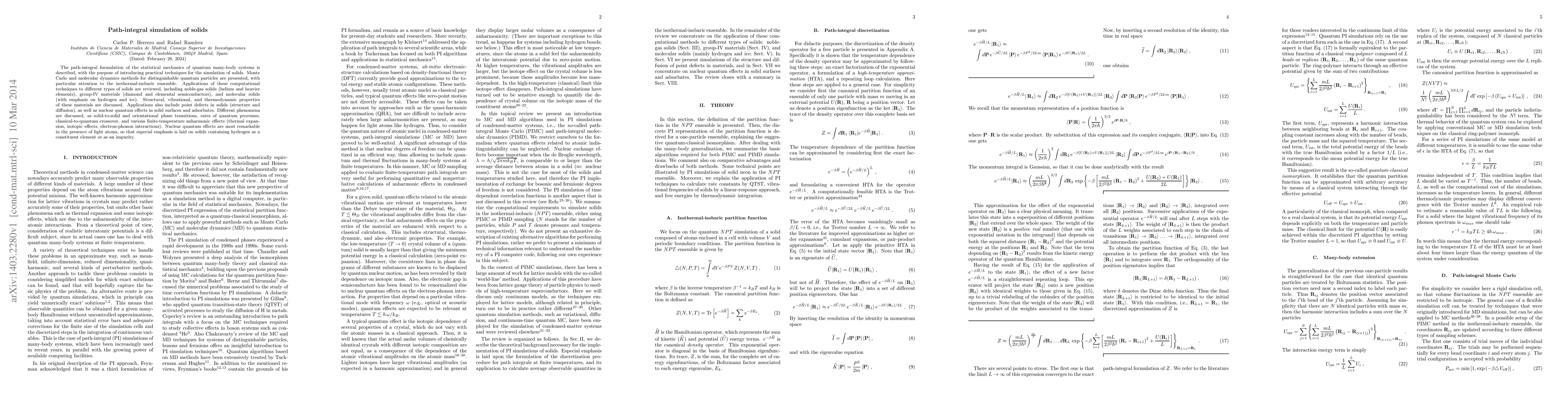 This paper introduces path-integral methods for simulating the statistical mechanics of quantum many-body systems, focusing on Monte Carlo and molecular dynamics techniques. It reviews applications to various solids, highlighting structural, vibrational, and thermodynamic properties, with special emphasis on hydrogen-containing materials and nuclear quantum effects.