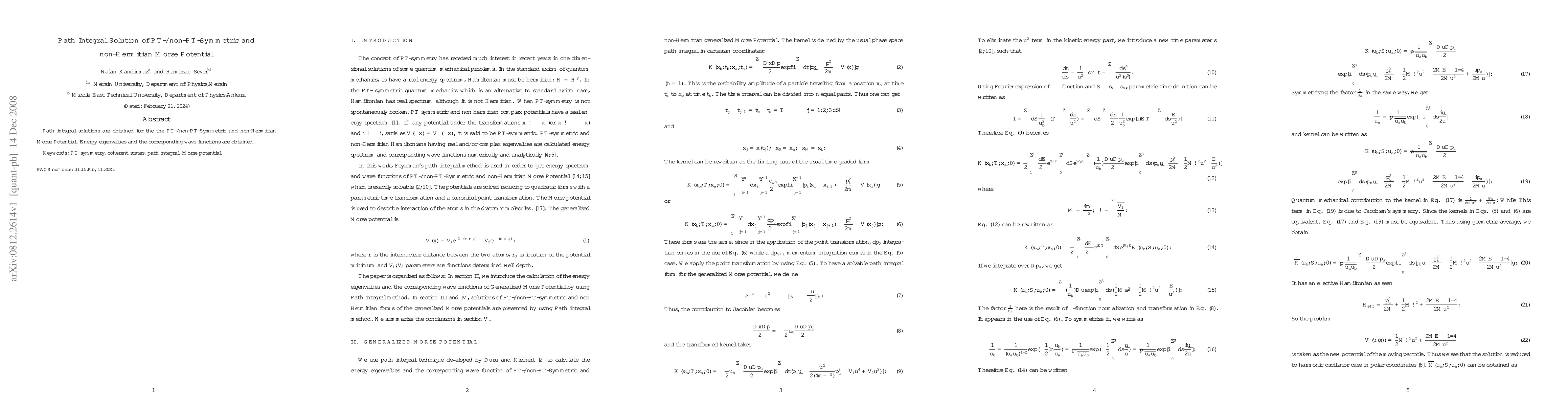 This paper presents path integral solutions for PT-/non-PT-symmetric and non-Hermitian Morse potentials, deriving energy eigenvalues and corresponding wave functions. The study explores the unique properties of these non-traditional quantum systems.