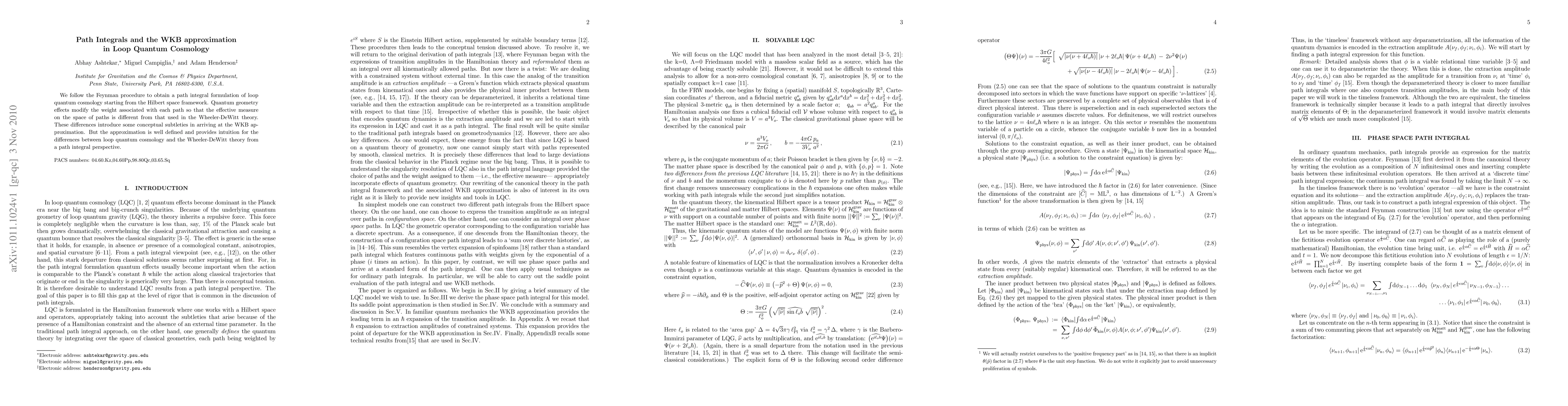 This paper develops a path integral formulation for loop quantum cosmology, showing how quantum geometry effects alter the effective path measure compared to the Wheeler-DeWitt theory. The WKB approximation is well-defined and offers insights into the conceptual differences between these two approaches.