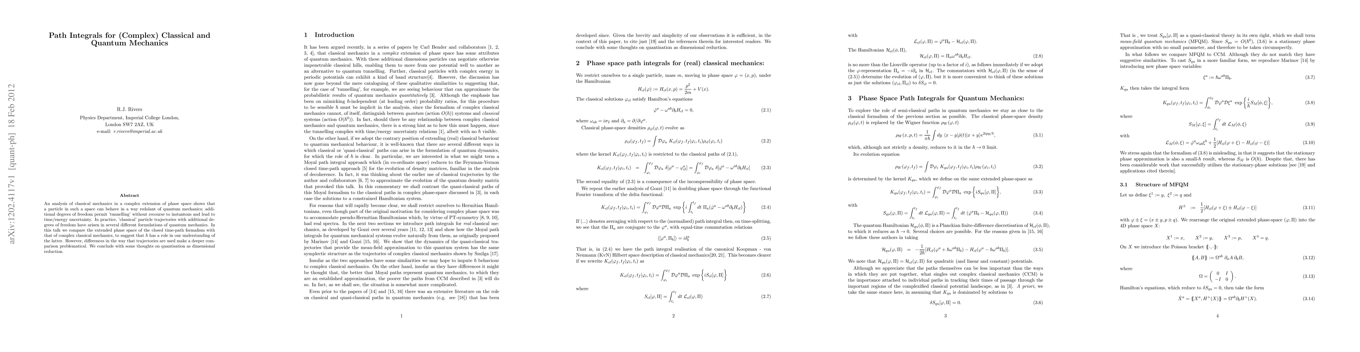 An analysis of classical mechanics in a complex extension of phase space shows that a particle in such a space can behave in a way redolant of quantum mechanics; additional degrees of freedom permit 'tunnelling' without recourse to instantons and lead to time/energy uncertainty. In practice, 'classical' particle trajectories with additional degrees of freedom have arisen in several different formulations of quantum mechanics. In this talk we compare the extended phase space of the closed time-path formalism with that of complex classical mechanics, to suggest that $\hbar$ has a role in our understanding of the latter. However, differences in the way that trajectories are used make a deeper comparison problematical. We conclude with some thoughts on quantisation as dimensional reduction.