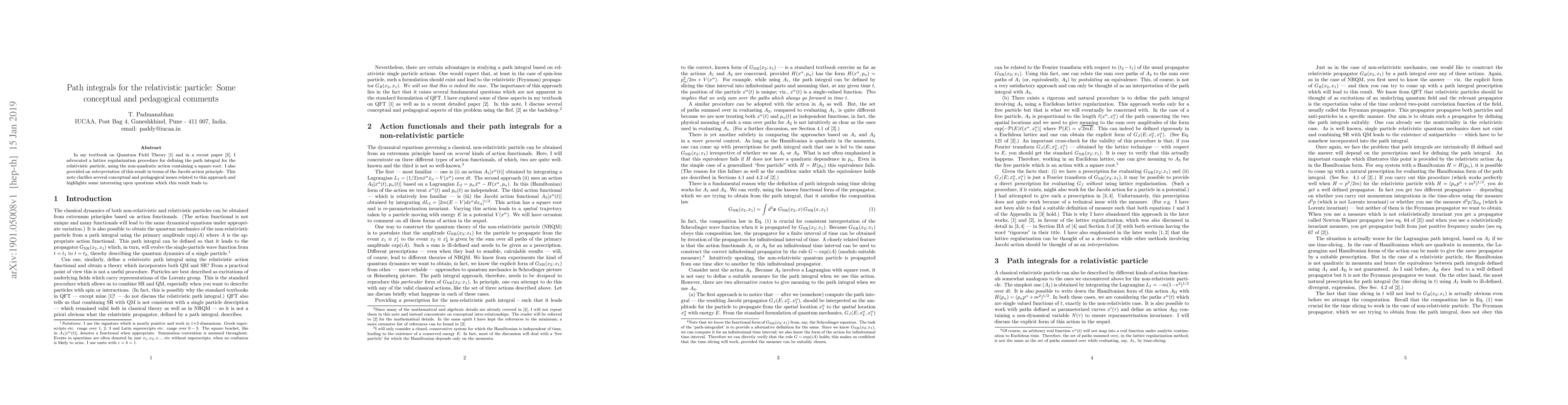 The research advocates a lattice regularization procedure for defining the path integral for the relativistic particle, using a non-quadratic action containing a square root. It also provides an interpretation in terms of the Jacobi action principle.