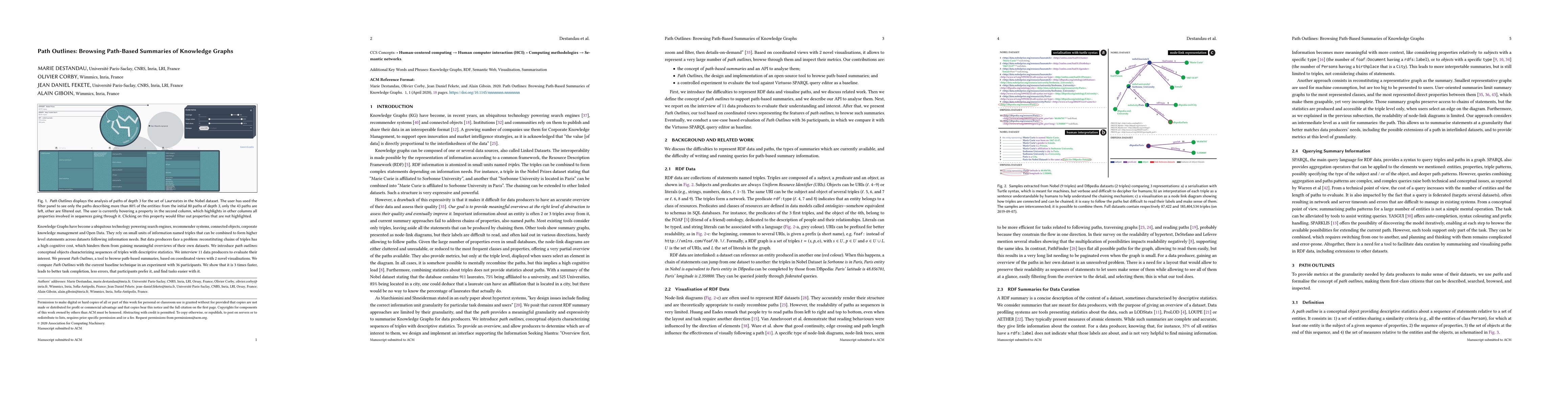 Path Outlines provide a novel approach to visualizing and summarizing Knowledge Graphs by using coordinated views and 2 novel visualizations.