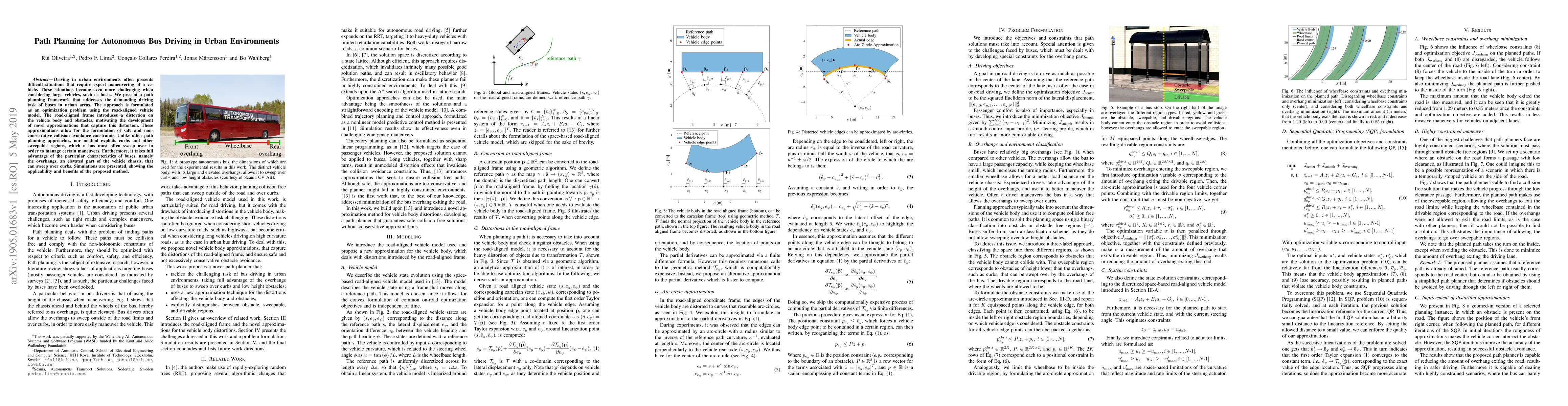 Researchers develop a path planning framework for autonomous buses in urban areas, leveraging curbs and overhangs to improve safety and maneuverability. The approach uses an optimization problem with novel approximations to capture distortion and ensure collision avoidance while exploiting bus-specific features.