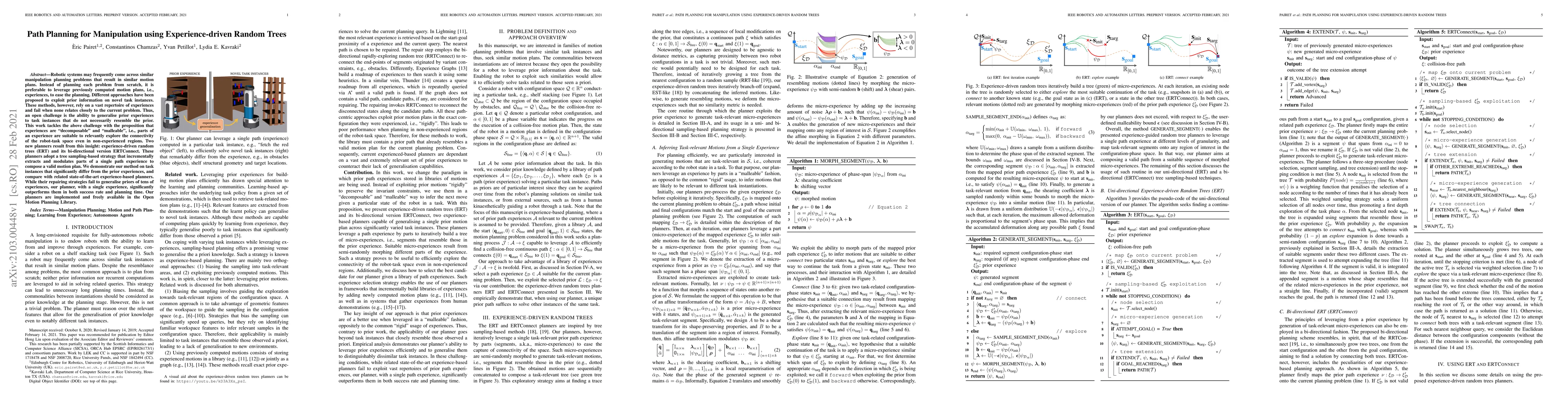 A new method called experience-driven random trees improves robotic manipulation planning by leveraging a single prior experience to generate motion plans for novel task instances, outperforming existing methods in success rate and planning time.