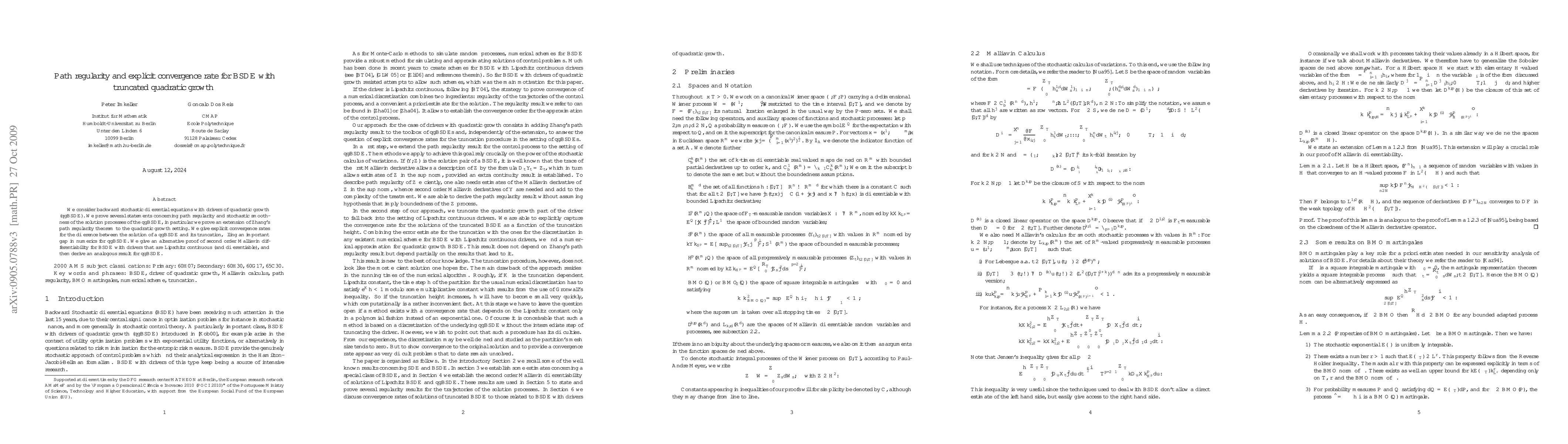 We consider backward stochastic differential equations with drivers of quadratic growth (qgBSDE). We prove several statements concerning path regularity and stochastic smoothness of the solution processes of the qgBSDE, in particular we prove an extension of Zhang's path regularity theorem to the quadratic growth setting. We give explicit convergence rates for the difference between the solution of a qgBSDE and its truncation, filling an important gap in numerics for qgBSDE. We give an alternative proof of second order Malliavin differentiability for BSDE with drivers that are Lipschitz continuous (and differentiable), and then derive an analogous result for qgBSDE.