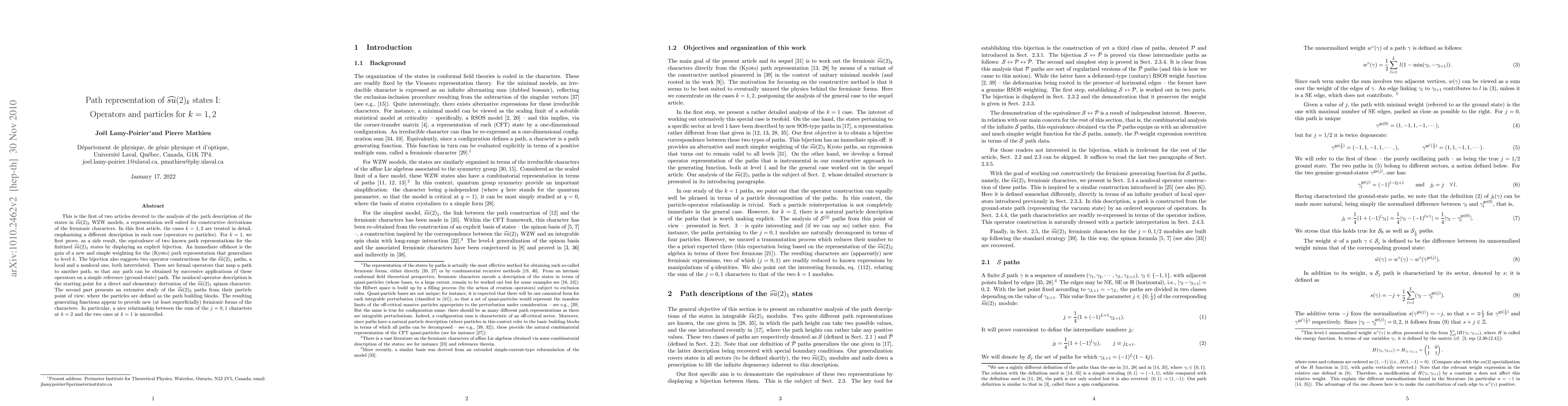 This paper explores the path representation of su(2)_k states for k=1,2, focusing on operator and particle descriptions. For k=1, it establishes an equivalence between two path representations and introduces two operator constructions, leading to a derivation of the spinon character. For k=2, it examines su(2)_2 paths from a particle perspective, revealing new fermionic forms of the characters and a relationship between k=2 and k=1 characters.