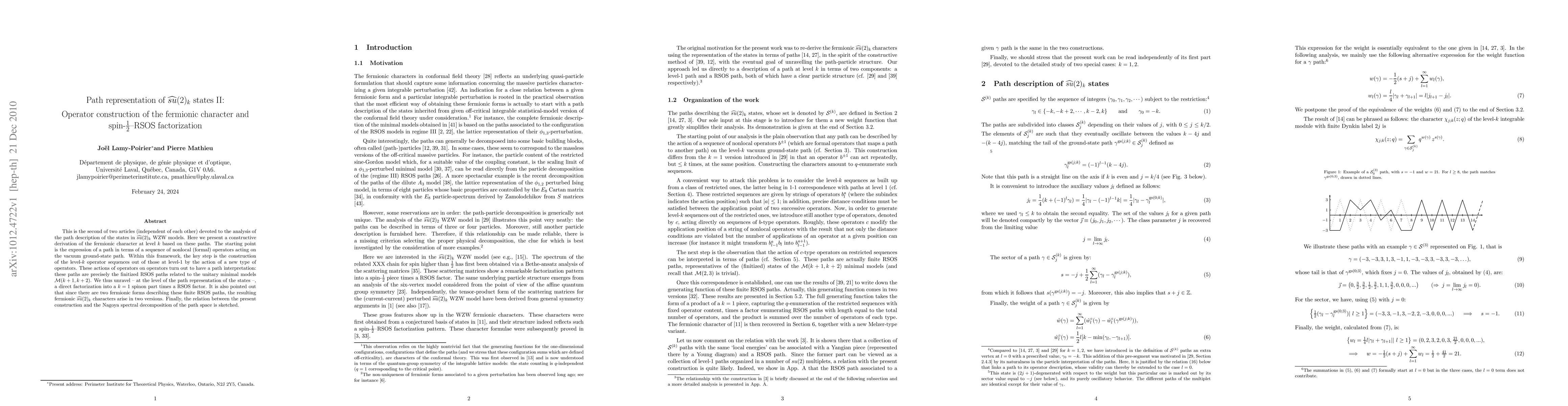 This paper constructs the fermionic character for su(2)_k states using path representations and nonlocal operators, revealing a factorization into a spin-1/2 part and a RSOS factor. It also discusses two versions of the fermionic su(2)_k characters arising from finite RSOS paths.