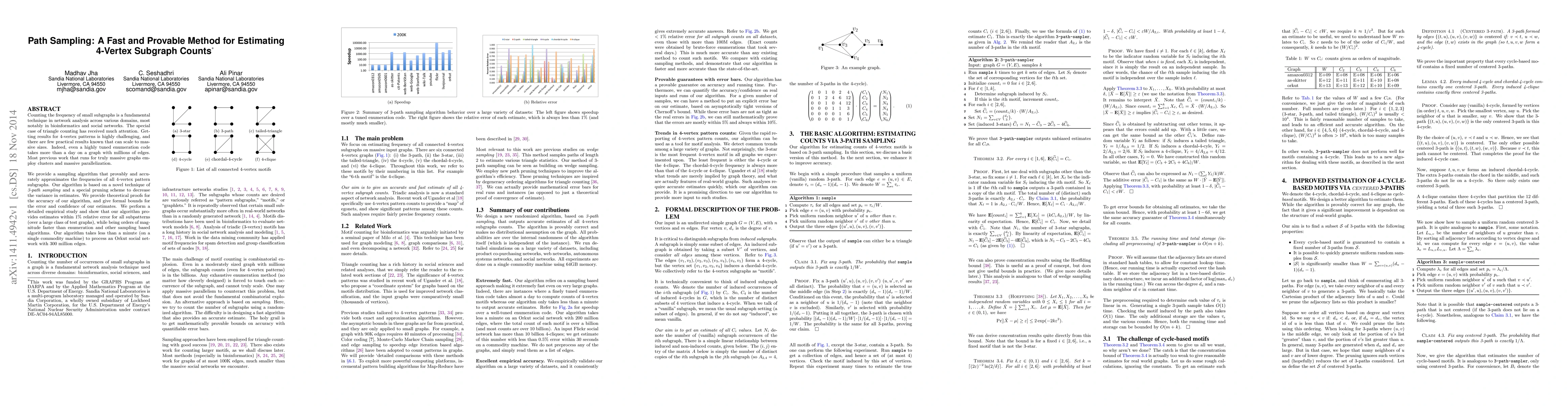 The research introduces a fast and provable method for estimating 4-vertex subgraph counts using 3-path sampling, accompanied by a specialized centered-sampling approach for cycle-based motifs, which significantly outperform existing enumeration and sampling-based algorithms in terms of speed and accuracy.