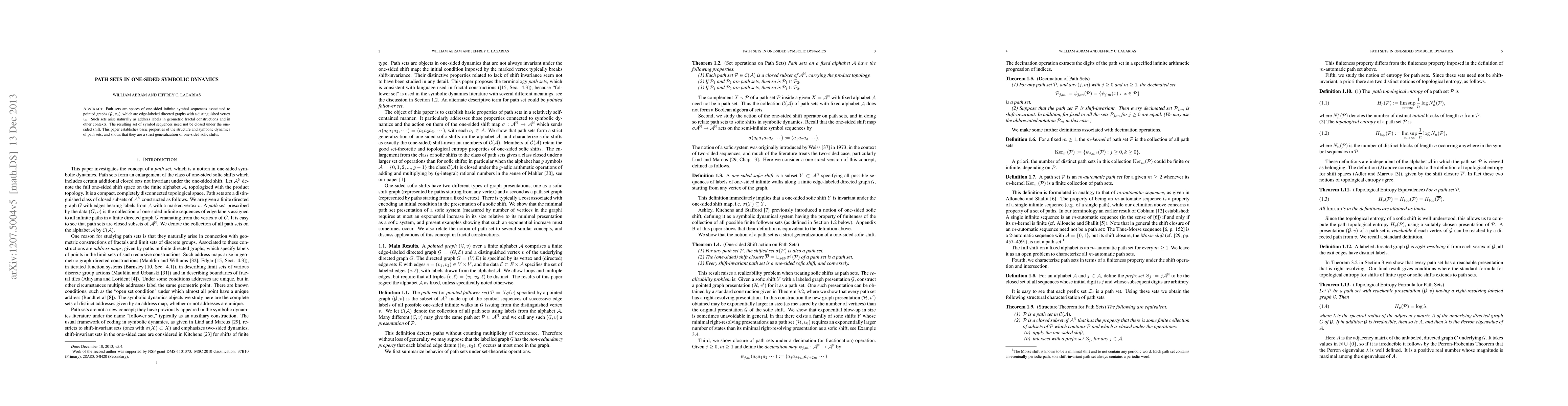This paper introduces path sets as a generalization of one-sided sofic shifts, establishing their basic properties and symbolic dynamics. It shows that path sets arise naturally in geometric fractal constructions and other contexts.