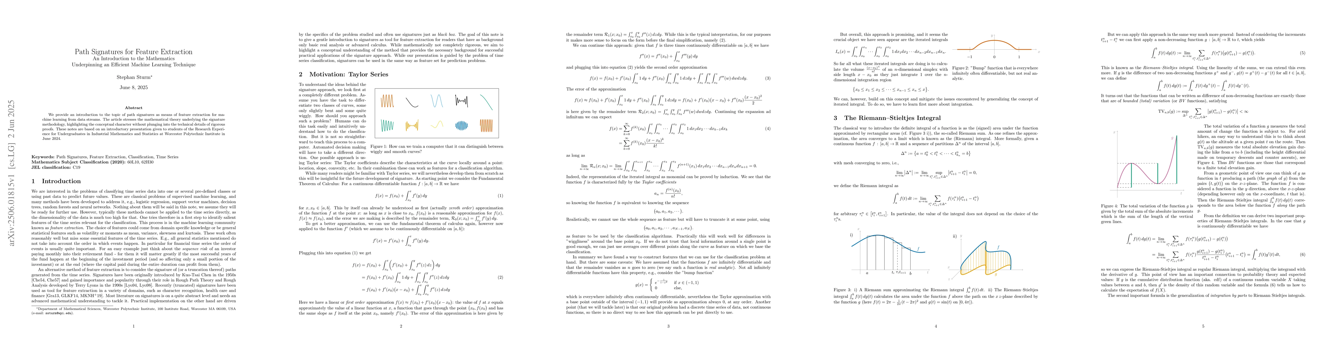 This paper introduces path signatures as a feature extraction technique for machine learning from data streams, highlighting their mathematical underpinnings. It provides an overview of the concept without delving into technical details, aiming to introduce students to this efficient machine learning method.