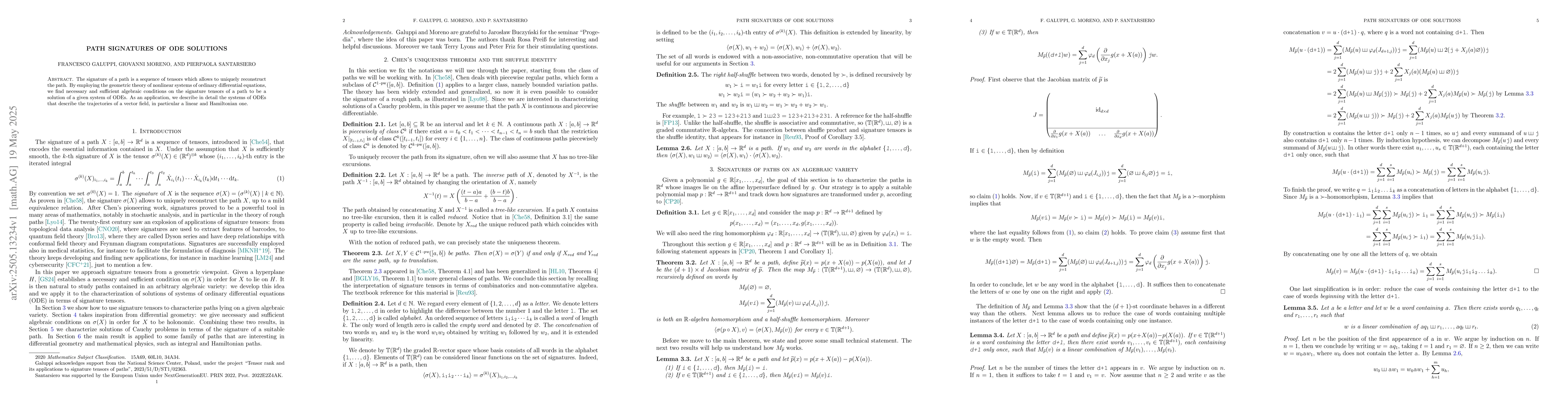The research employs the geometric theory of nonlinear systems of ordinary differential equations (ODEs) to find necessary and sufficient algebraic conditions on the signature tensors of a path to be a solution of a given system of ODEs.