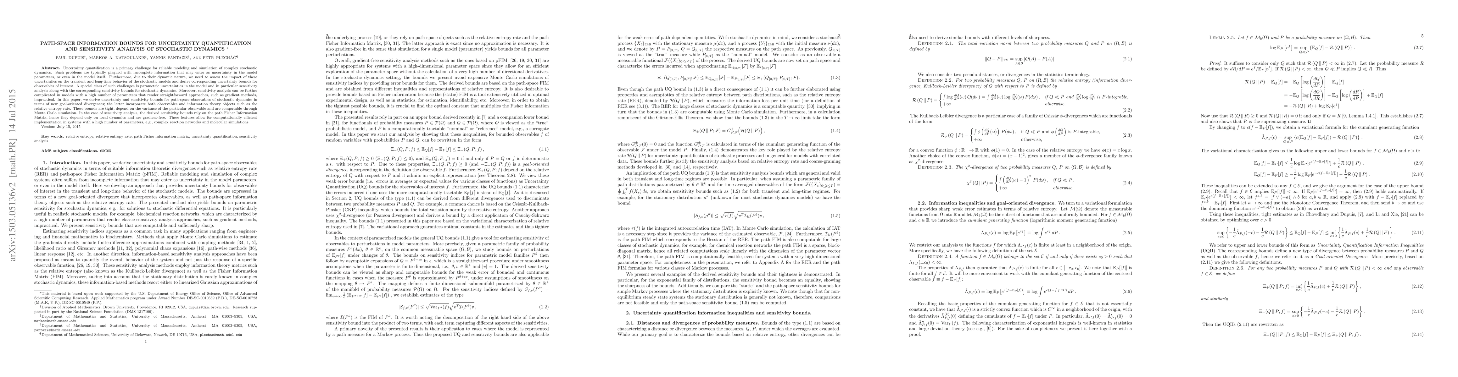 This paper develops new bounds for uncertainty quantification and sensitivity analysis in stochastic dynamics, using path-space information theory. The proposed bounds are gradient-free and computable via Monte Carlo simulations, making them suitable for systems with many parameters.