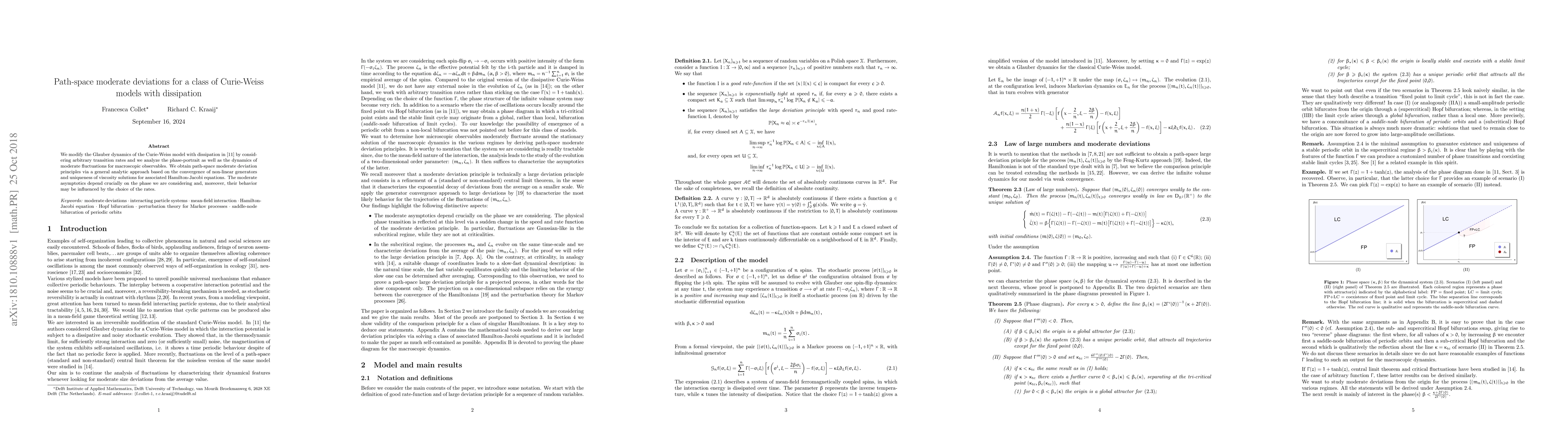 This paper modifies the Glauber dynamics of the Curie-Weiss model with dissipation to analyze moderate fluctuations in macroscopic observables. It establishes path-space moderate deviation principles using a general analytic approach based on non-linear generator convergence and Hamilton-Jacobi equations.
