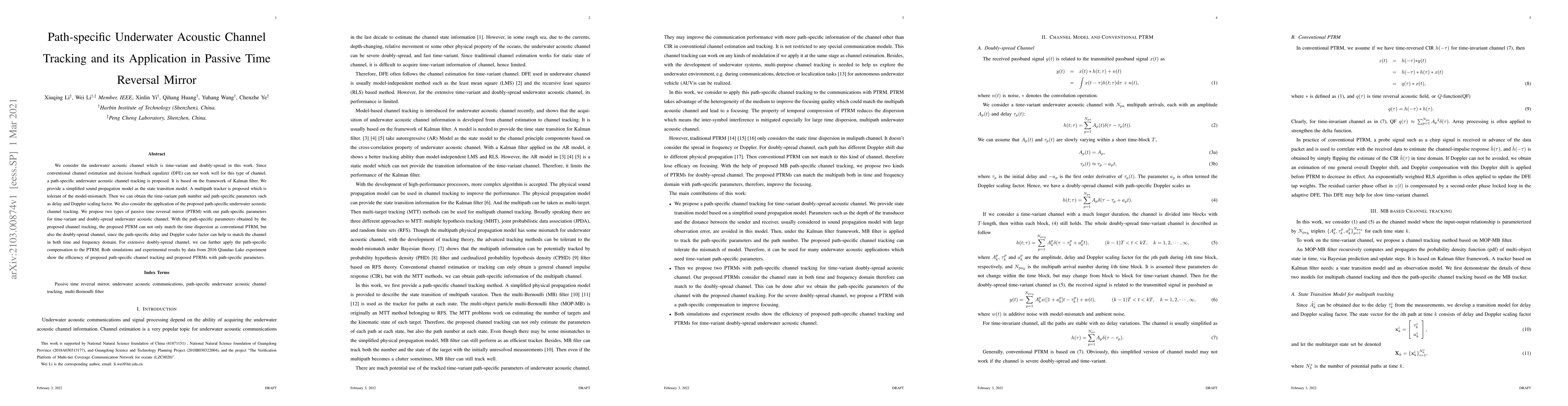 This paper proposes a path-specific underwater acoustic channel tracking method based on Kalman filtering to address the time-variant and doubly-spread nature of the channel. It introduces a multipath tracker that compensates for model mismatch and applies the method to develop two types of passive time reversal mirrors (PTRM) that enhance channel matching in both time and frequency domains.